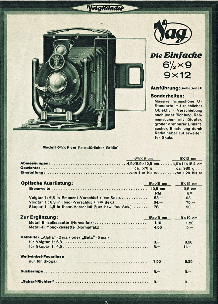 VAG Die VAG war das einfachste und kostengünstigste Modell der Laufboden - Klappkameras. VAG 6,5 x 9 cm VAG 9 x 12 cm |
