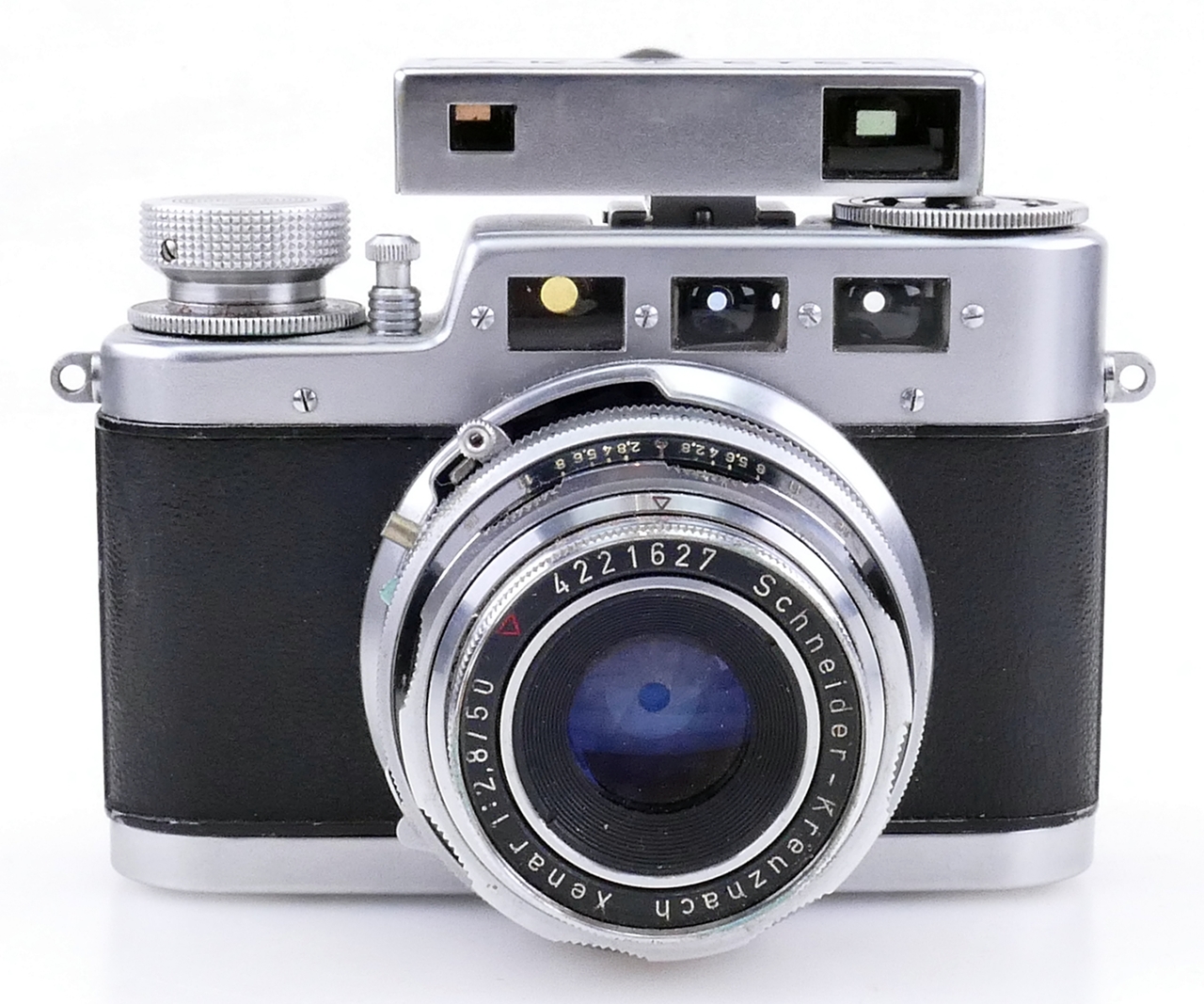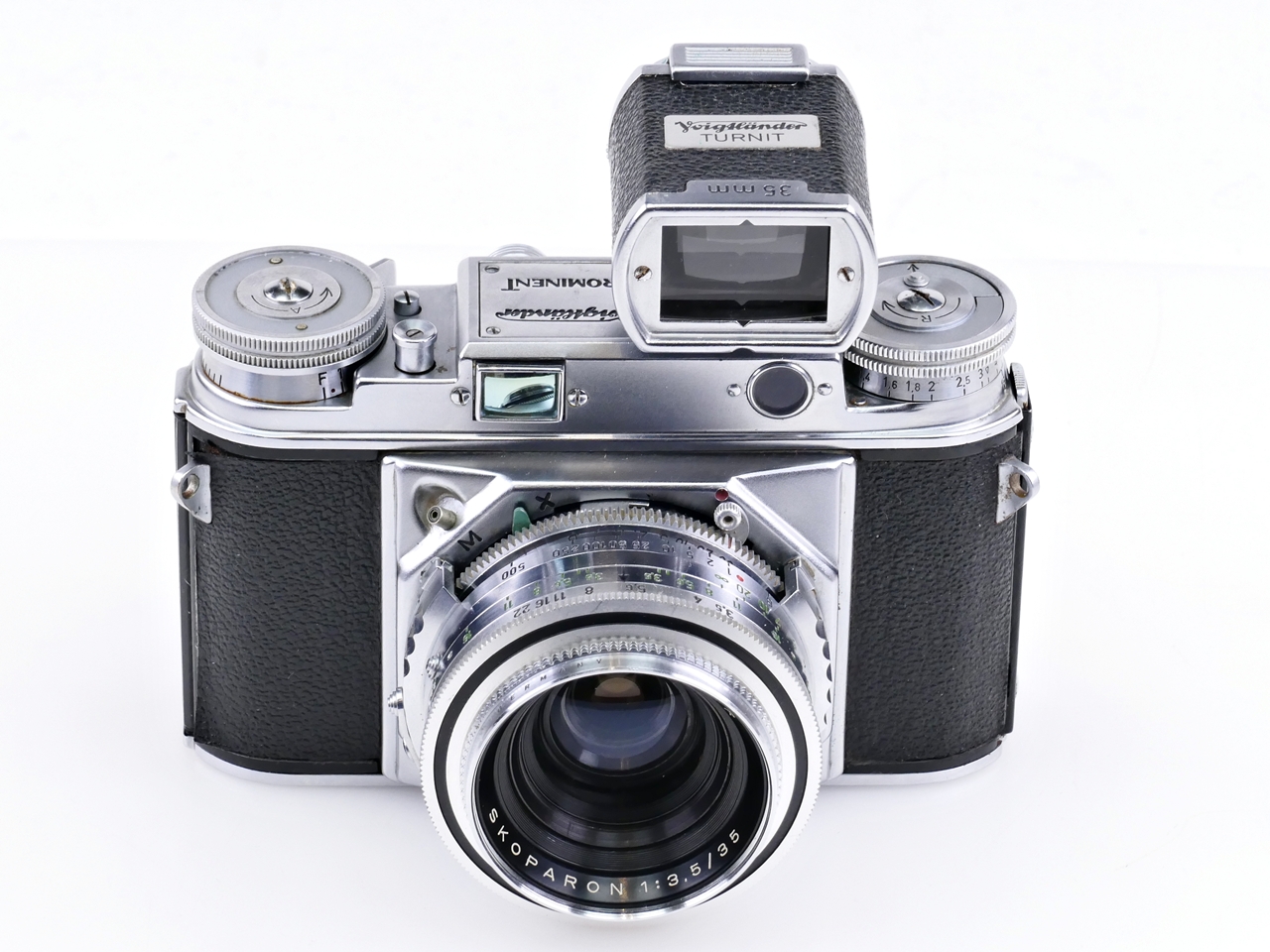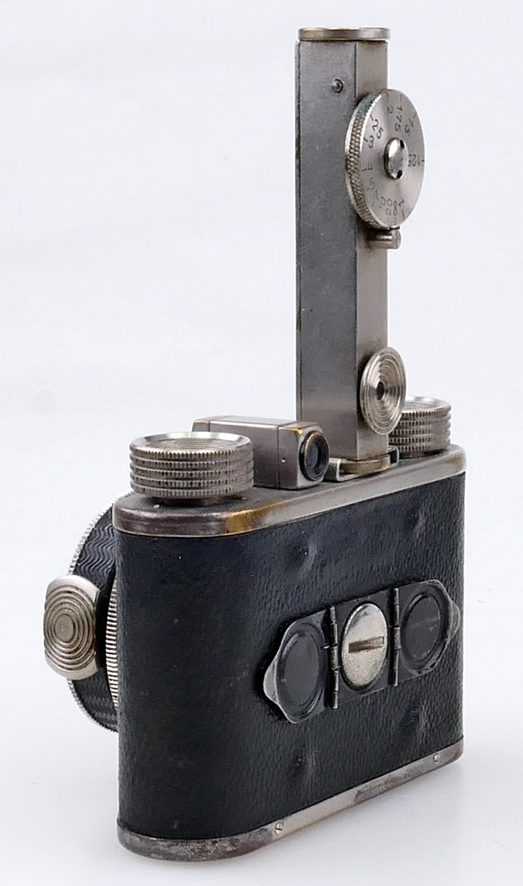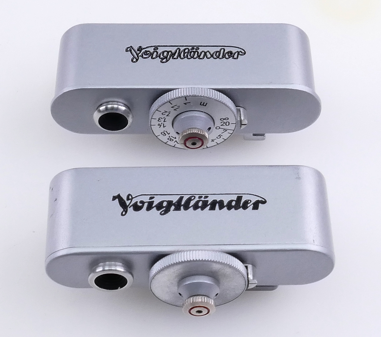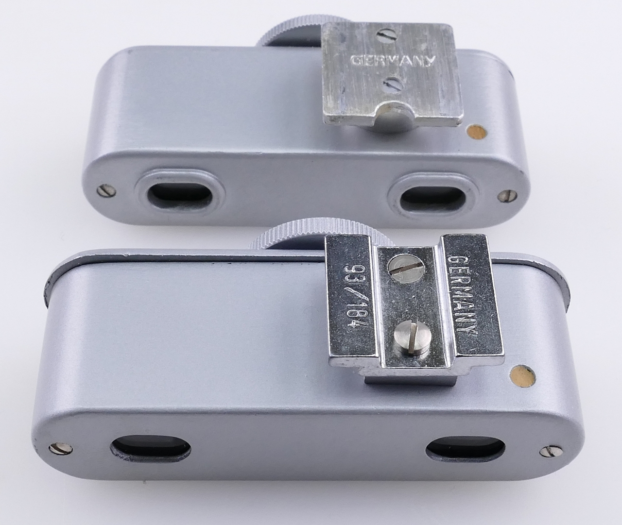![]() Voigtländer Voigtländer baute schon 1933 Rollfilmkameras mit Entfernungsmesser. Die späteren Entfernungsmesser unterschieden sich eher nur im Detail. Alle haben einen seitlich verstzten Befestigungsfuß. Obligatorisch, das schöne Ledertäschchen.