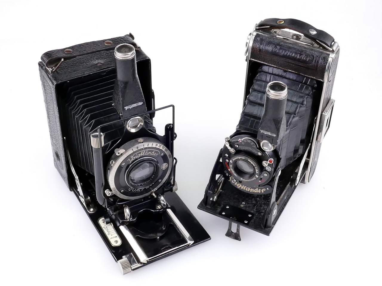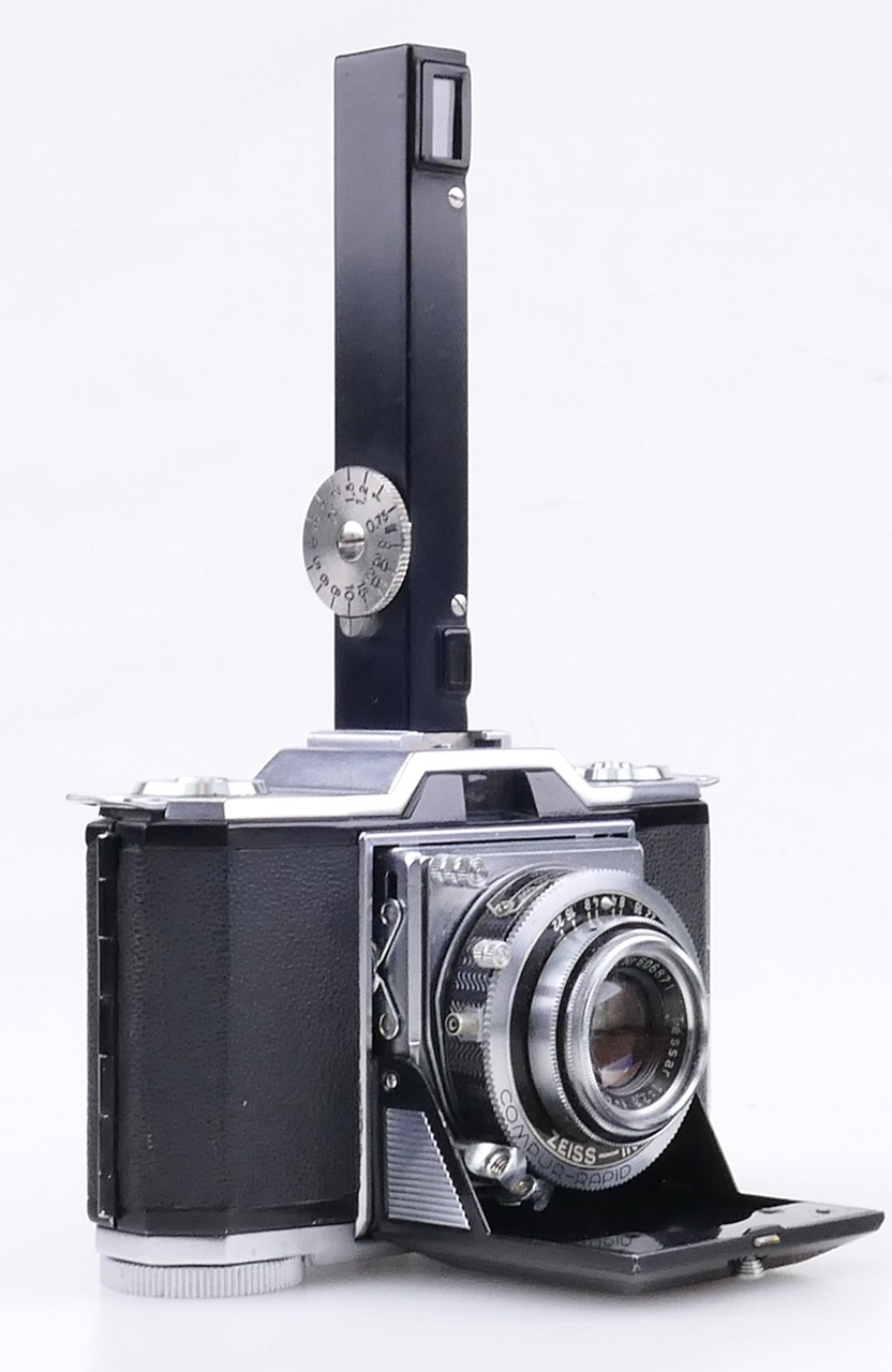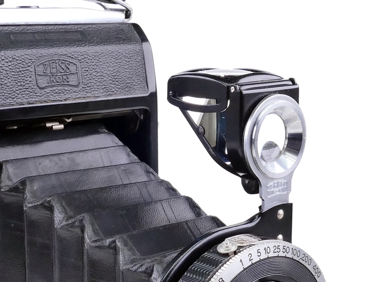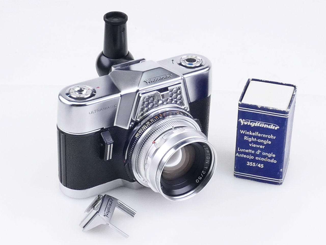 ![]() Voigtländer Voigtländer baute schon 1933 Rollfilmkameras mit Entfernungsmesser. Die späteren Entfernungsmesser unterschieden sich eher nur im Detail. Alle haben einen seitlich verstzten Befestigungsfuß. Obligatorisch, das schöne Ledertäschchen.