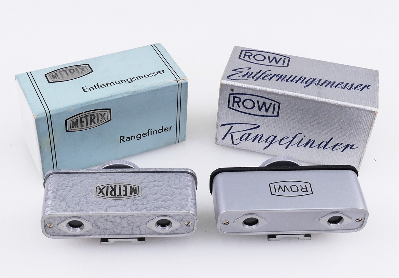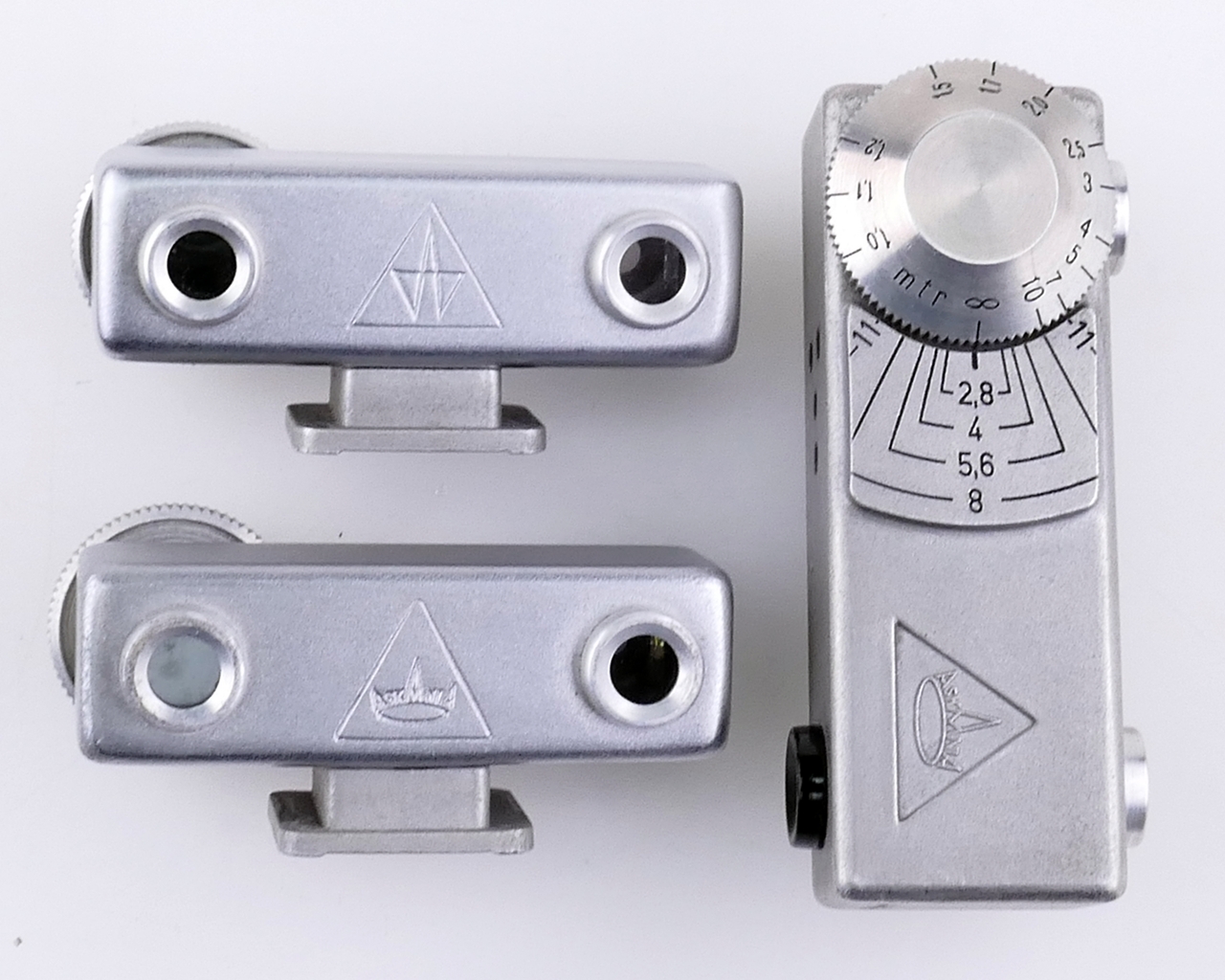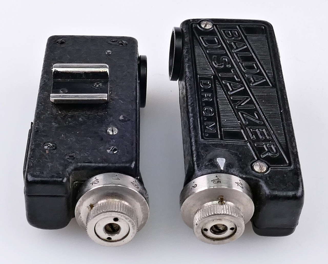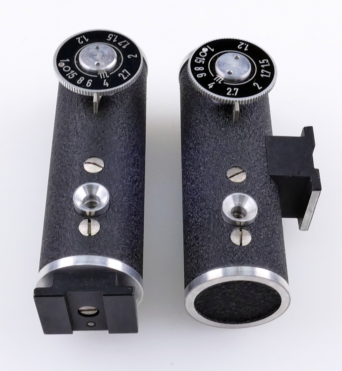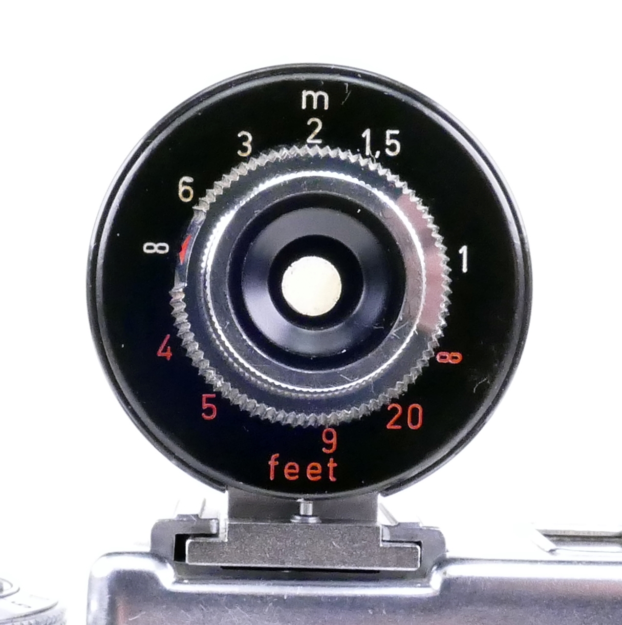 Um die richtige Entfernung bei der Aufnahme einzustellen benutzte man Entfernungsmesser. Einige Kameras hatten sie integriert, separat zu bedienen, aber oft mit der Entfernungseinstellung der Kamera gekoppelt. Für andere Kameras gab es separate Geräte, meistens zum Aufstecken auf den Zubehörschuh. |