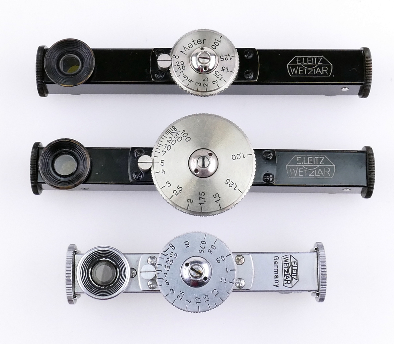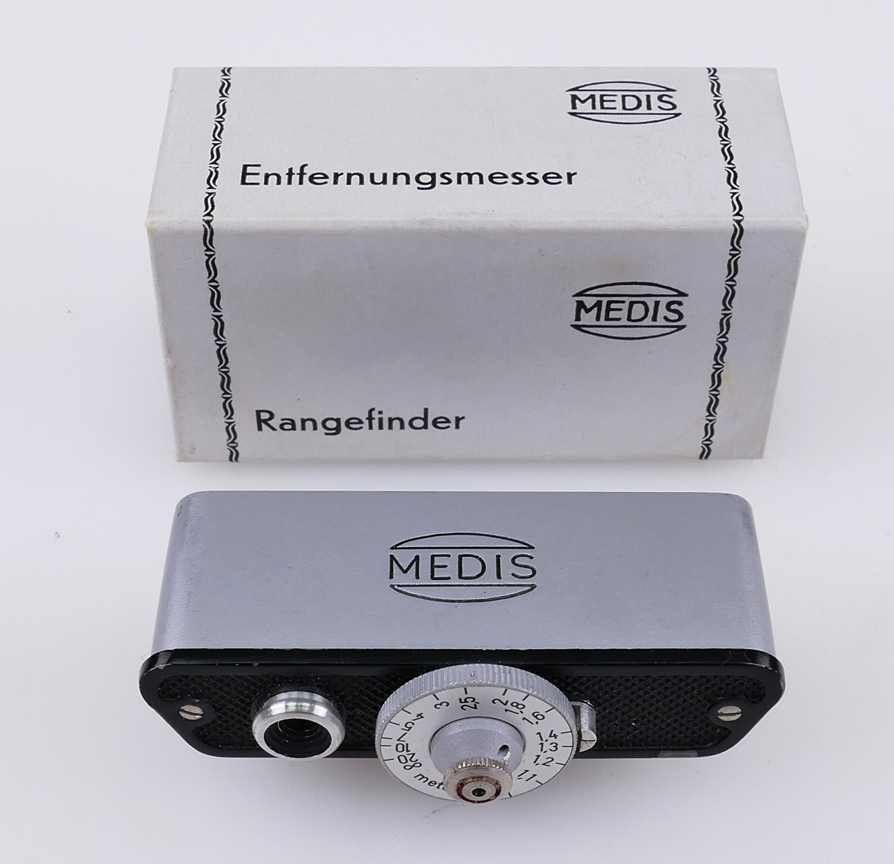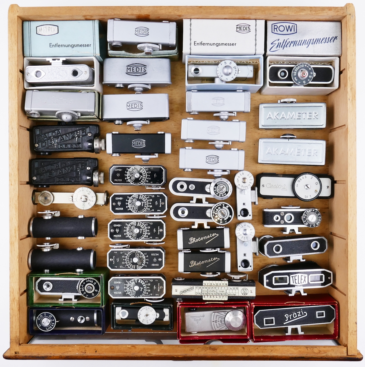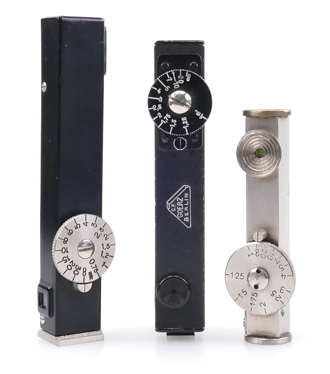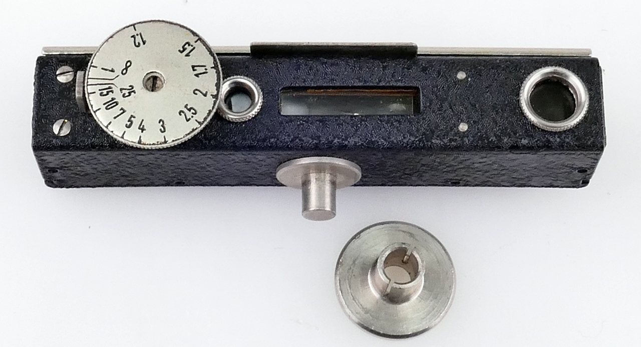 Um die richtige Entfernung bei der Aufnahme einzustellen benutzte man Entfernungsmesser. Einige Kameras hatten sie integriert, separat zu bedienen, aber oft mit der Entfernungseinstellung der Kamera gekoppelt. Für andere Kameras gab es separate Geräte, meistens zum Aufstecken auf den Zubehörschuh. |