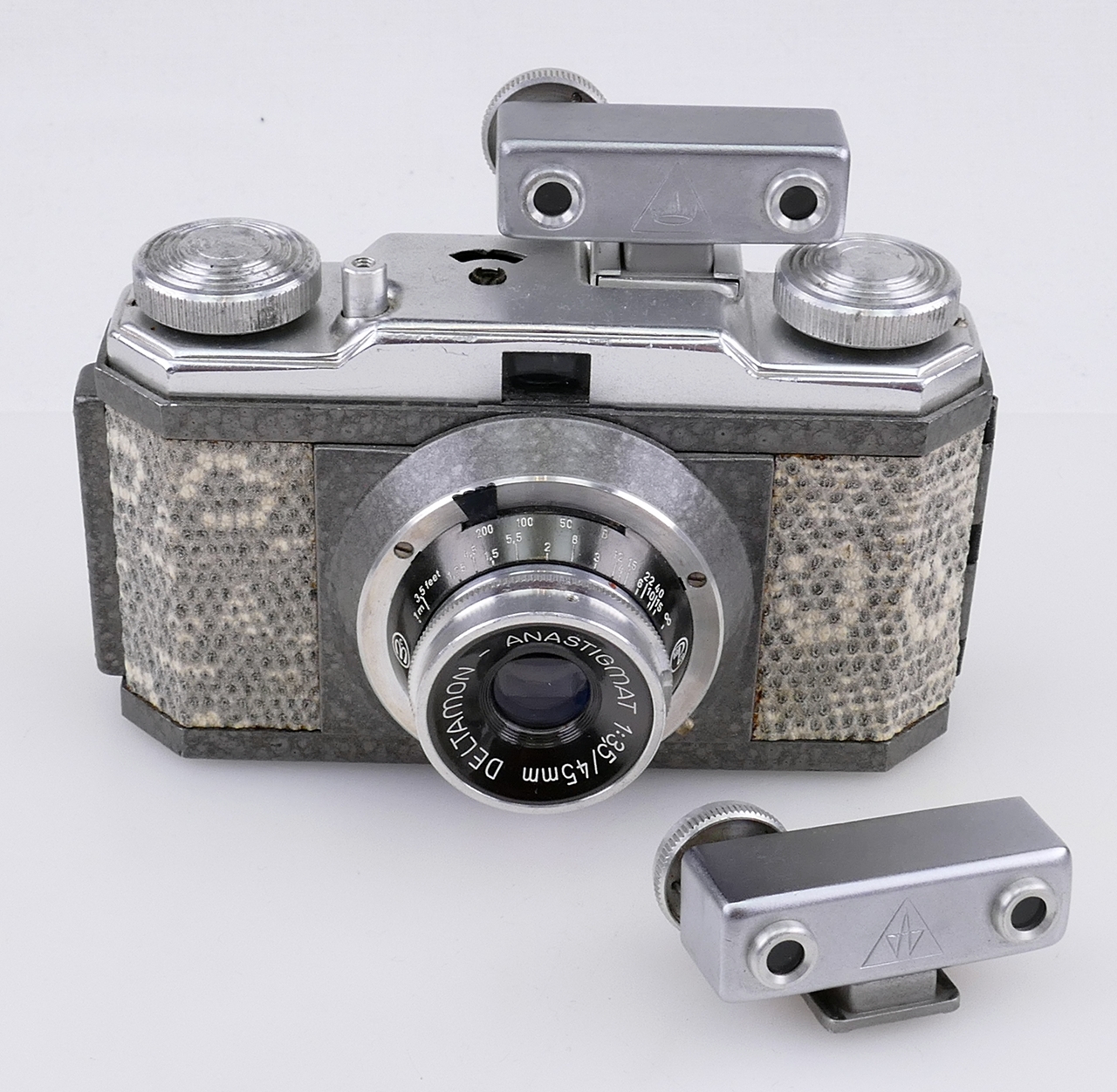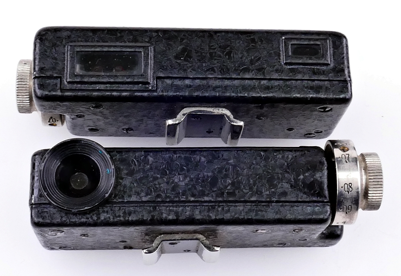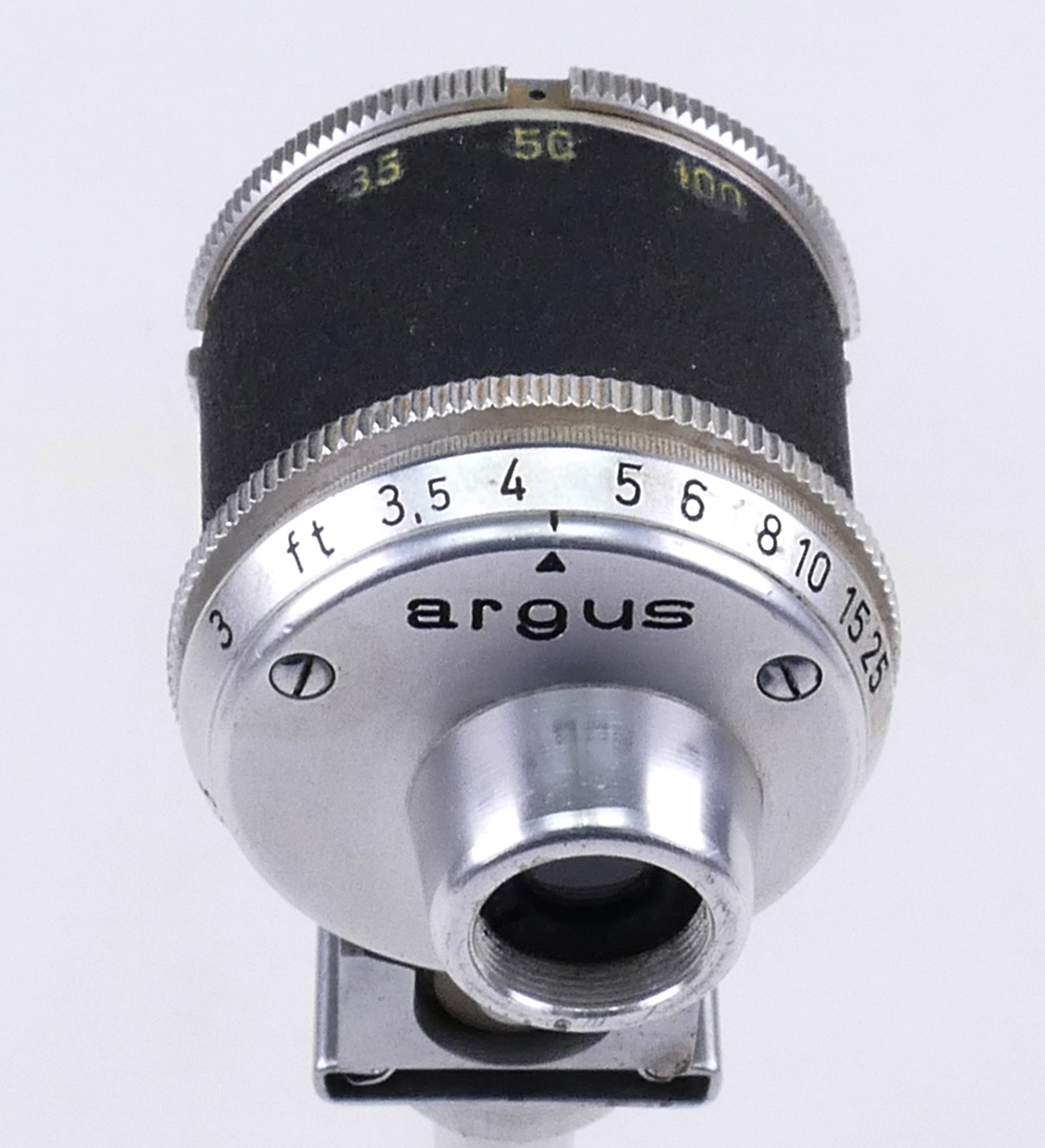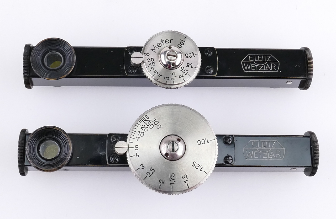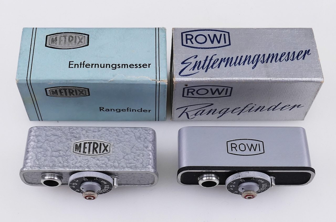 Um die richtige Entfernung bei der Aufnahme einzustellen benutzte man Entfernungsmesser. Einige Kameras hatten sie integriert, separat zu bedienen, aber oft mit der Entfernungseinstellung der Kamera gekoppelt. Für andere Kameras gab es separate Geräte, meistens zum Aufstecken auf den Zubehörschuh. |
