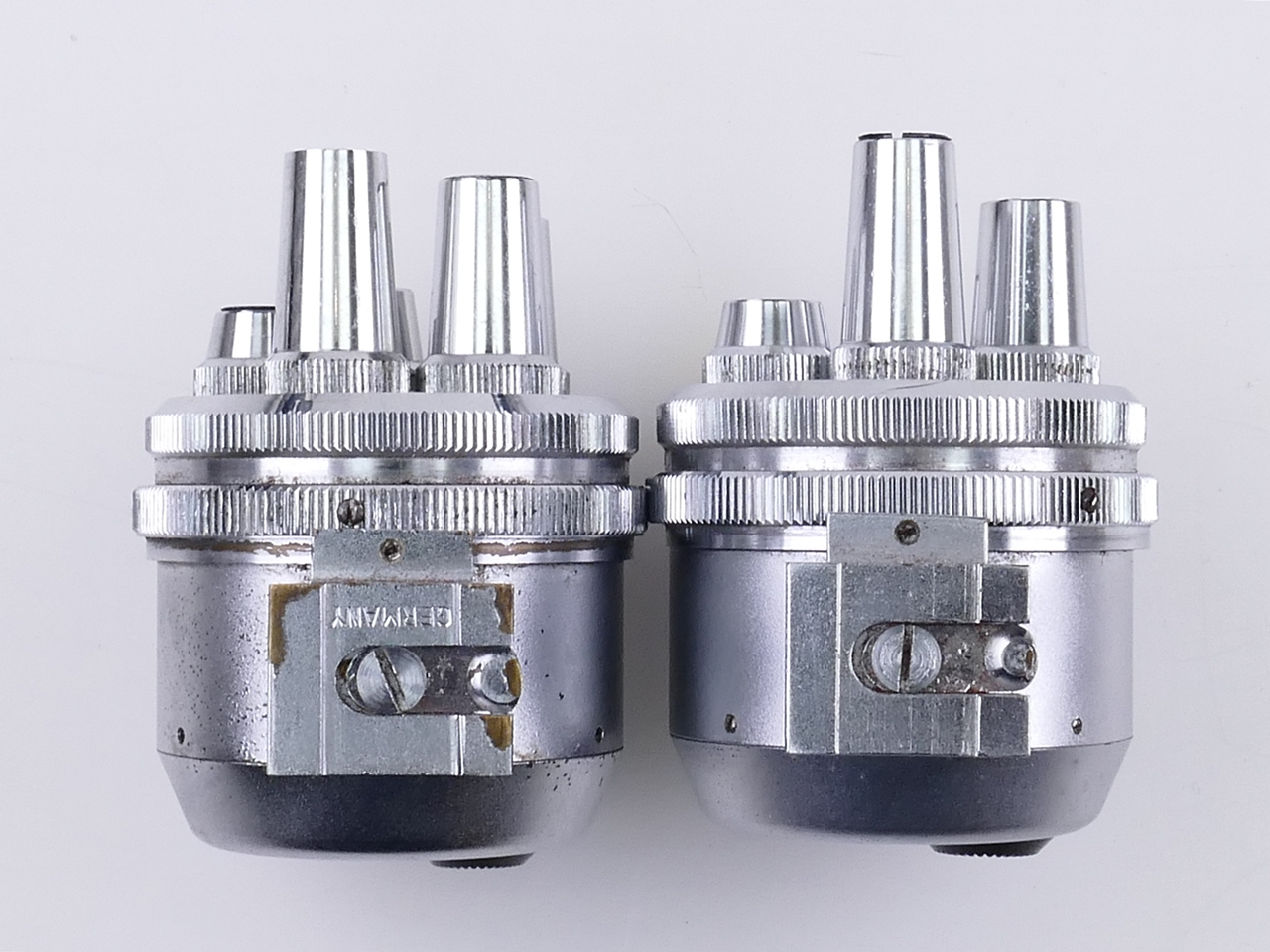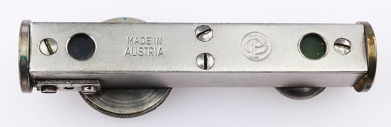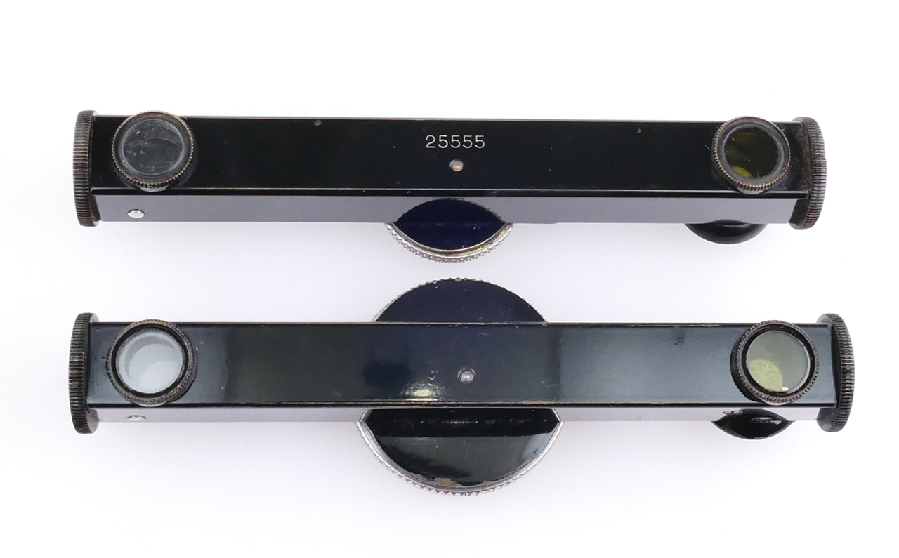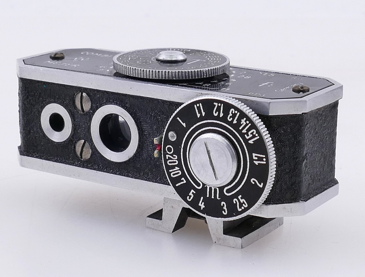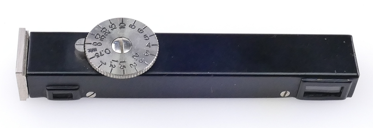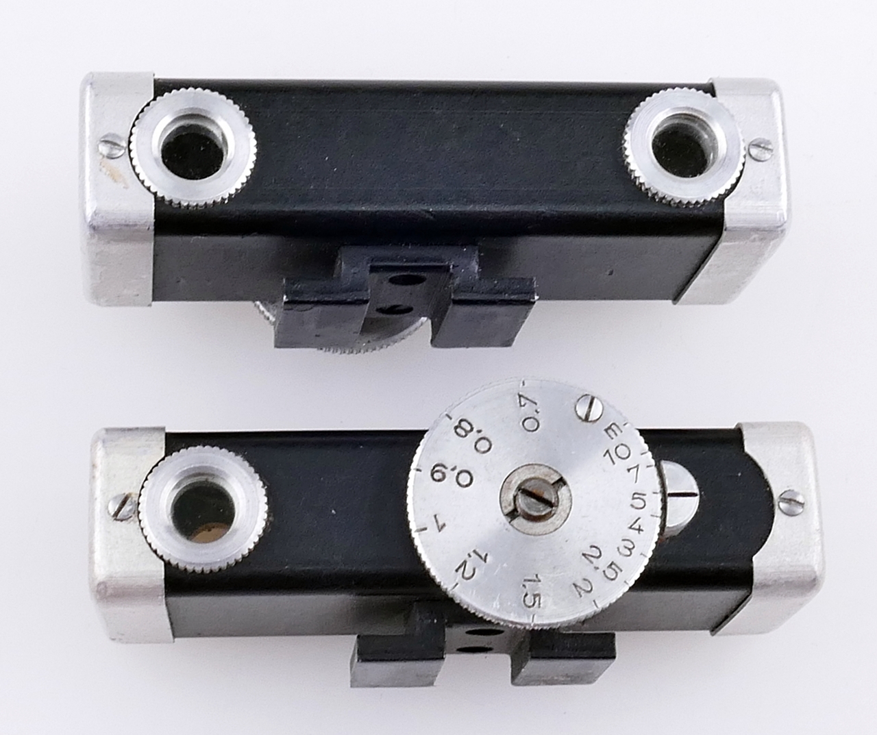 Geringe Unterschiede während der Bauzeit. Das Modell mit gefüllterm Schriftzug stammt aus dem Versuchslabor. Weitere Objekte Der Combimeter IIa von FOGRO Fotogroßhandel vereint einen Entfernungmesser und einen optischen Belichtungsmesser. Hintere Scheibe für Entfernungsmessung, oben die Rechenscheibe für die Belichtung. Kompakter Entfernungsmesser Photometer. Messung ab 70 cm. Zwei Versionen des Päzisa Entfernungsmessers. Hersteller: Präzisa Optik Spangenberg. Certo-S mit feststehender Scheibe und drehbarem Kranz. Aus einer Schmiede: Vergleichbare EM von METRIX und ROWI. Korrekturknopf und versetzbarer Fuß. Sehr präzise Messungen ermöglichen diese EM mit sehr großer Messbasis. Für senkreche Benutzung gebaut. Verschiedene MEDIS EM. Der im rechten Bild unten ist ein Baumuster aus Holz ohne Funktion. AKAMETER - zwei Versionen des großen hochwertigen Entfernungsmessers. Zwei kleine elegante, und ein großer, massiver EM vom Askania Bodenseewerk. Seltene runde Bauform vom AMF - EM für waagerechte und senkrechte Anwendungen. Der FFB COMBIMETER enthält einen Entfernungmesser und optischen Belichtungsmesser. Abnehmbarer Fuß. Seitliche Bedienung am BALDA DISTANZER. Recht selten und massiv ist der Entfernungsmesser Präzi. Der TELEX hat getrennte Sucher für Messung und Anzeige. Unpraktischer Schneider EM für Montage am Objektiv. - - - Haben Sie jetzt den richtigen Durch- bzw. Scharfblick? Vielleicht konnte ich einen kurzen Einblick in die Vielfalt dieser "Kleinigkeiten"geben, oder Lust zu einer Sammlung vermitteln, die nicht viel Platz benötigt. |
