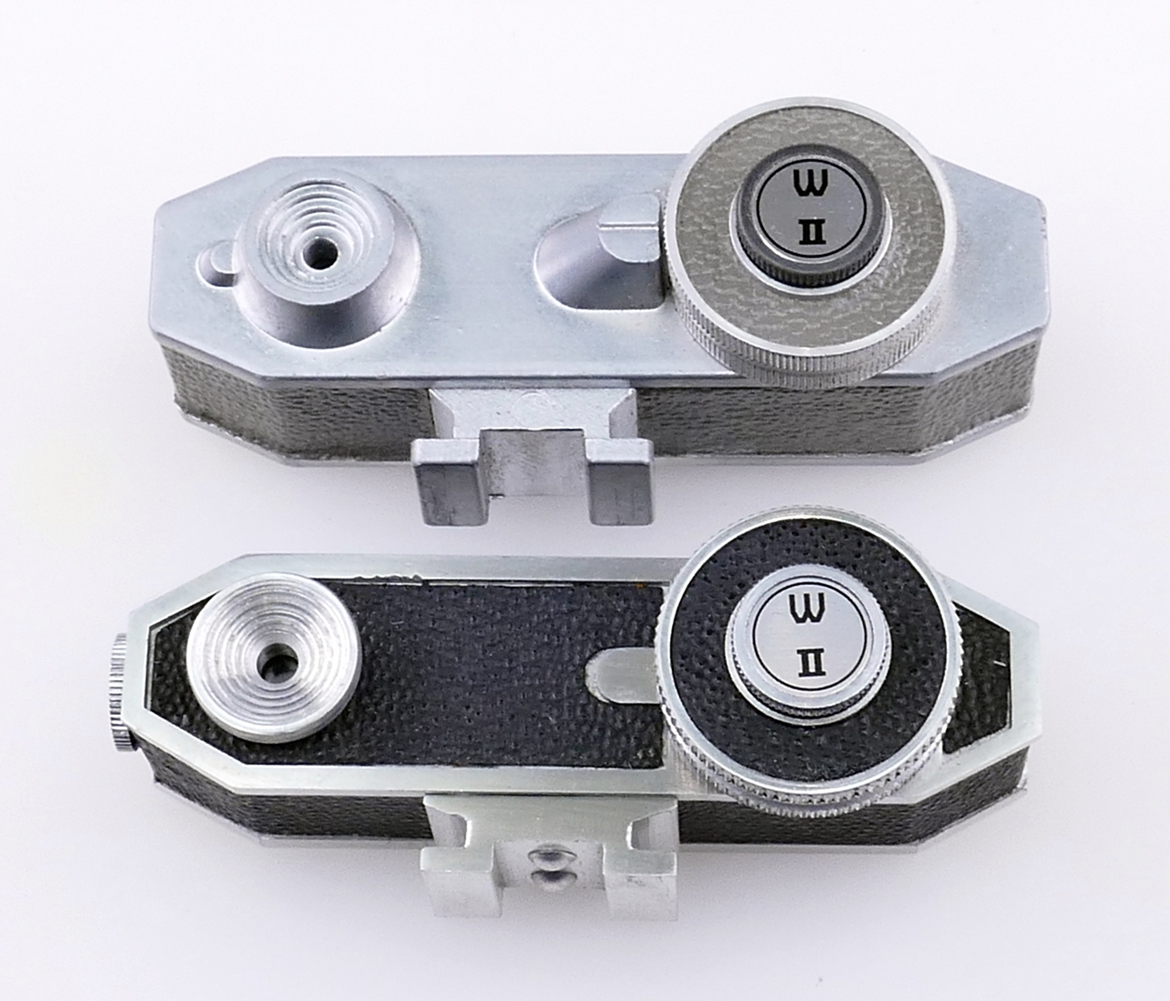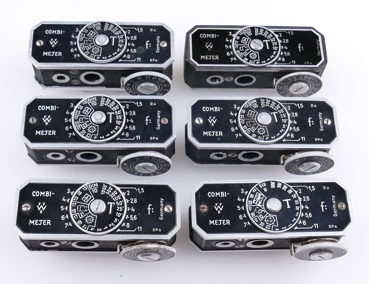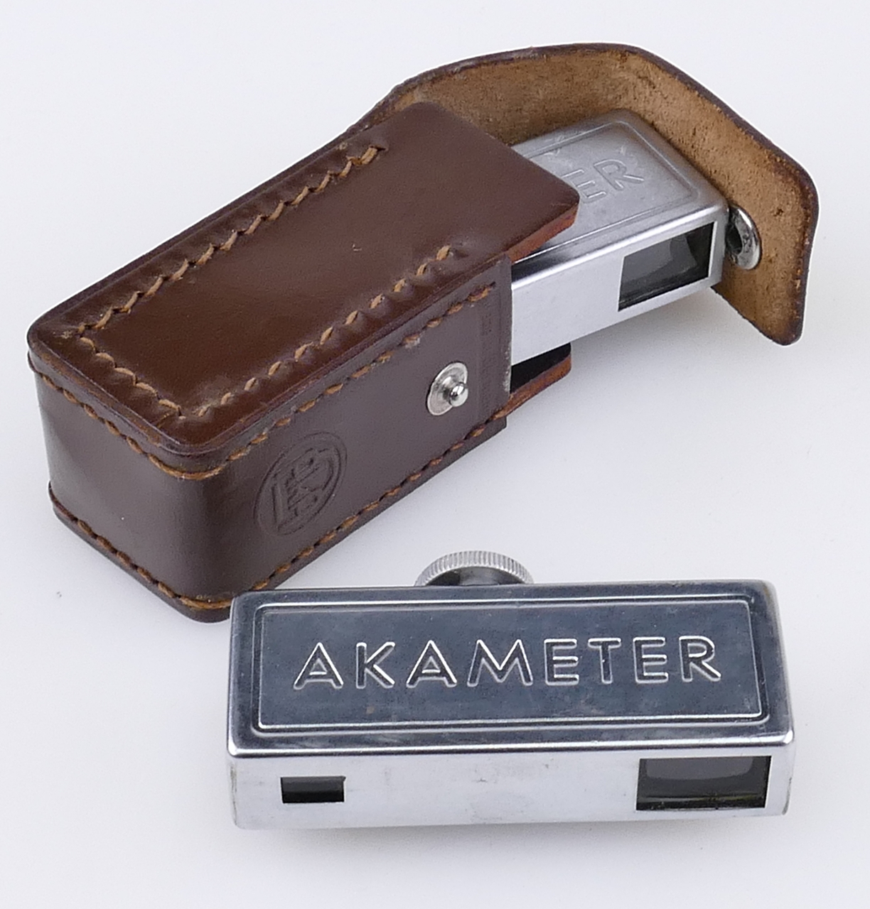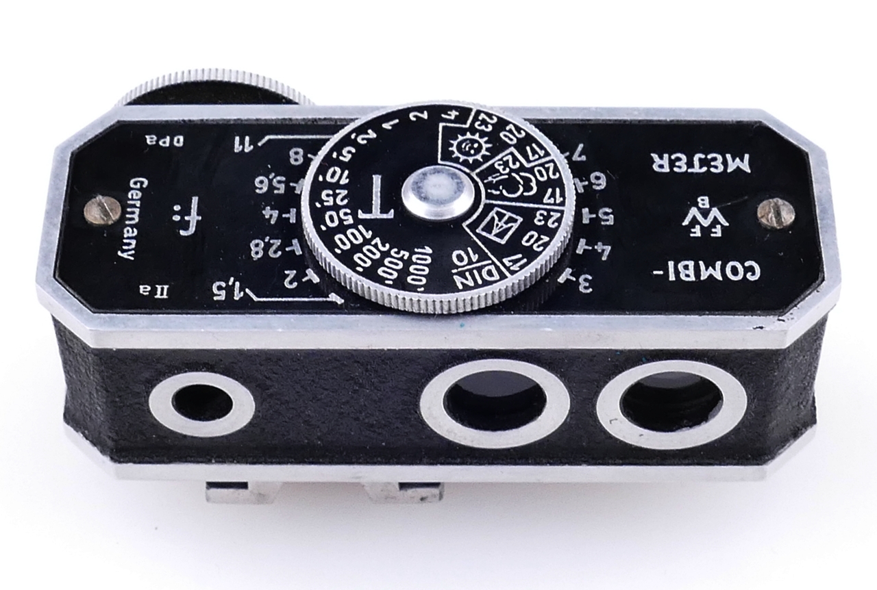 Entfernungsmesser Vorab einige Beispiele von Kameras mit eingebautem Entfernungsmesser. Teilweise haben die Kamerahersteller erheblichen Aufwand betrieben um Entfernungen zu erfassen. Hier am Beispiel von Zeiss Ikon Kameras. In Leica Kameras wurde das System perfektioniert. Zuerst noch mit getrennten Einblick von Sucher und Entfernungsmesser. Später erfolgte die Anzeige von Leuchtrahmen und Entfernung mit großer Basis im Sucherbild. Für mich war es nie ein Problem die richtige Entfernung zu schätzen. Für manche waren Entfernungsmesser aber unentbehliche Helfer. Das funktionierte allerdings nur, wenn diese richtig abgeglichen waren. Erschütterung konnte eine Dejustierung bewirken. Zur Justierung besitzen die meisten Entfernugsmesser eine Korrekturmöglichkeit. Die Bedienung ist einfach, meistens muss in der jeweiligen Entfernung ein Doppelbild in Deckung gebracht werden. Die Entfernung kann Außen am Drehrad oder im Sucher abgelesen werden. Im Laufe der Zeit sammelten sich einige Entfernugsmesser an, meistes als "Beifang" beim Kamerakauf. Dabei lohnt sich durchaus eine nähere Betrachtung dieser "Kleinode". Eine Basis von 85 mm für genaue Messungen haben die großen Entfernungsmesser von Leitz Wetzlar. WATAMETER Einst war meine Heimatstadt Braunschweig ein Zentrum der Fotoindustrie. Dass die bekannten WATAMETER Entfernungsmesser von der Firma Edmund Waterler in Braunschweig hergestellt wurden, erfuhr ich erst später. Es wurden verschiedene Modelle hergestellt. Beim WM I wird die Entfernung an der Einstellschraube abgelesen. Beim WM II und III erfolgt die Ablesung im Sucher. Der WM III hat zusätzlich einen Nahbereich 50 - 30 cm. Selten ist der Watamerter - Flash. Zur Ermittlung der Blendeneinstellung bei gemessener Entfernung. Bedienungsanleitung und zwei frühe Varianten des Watameters.