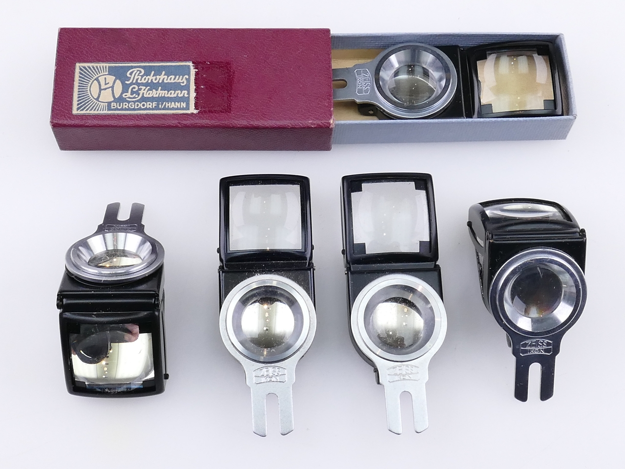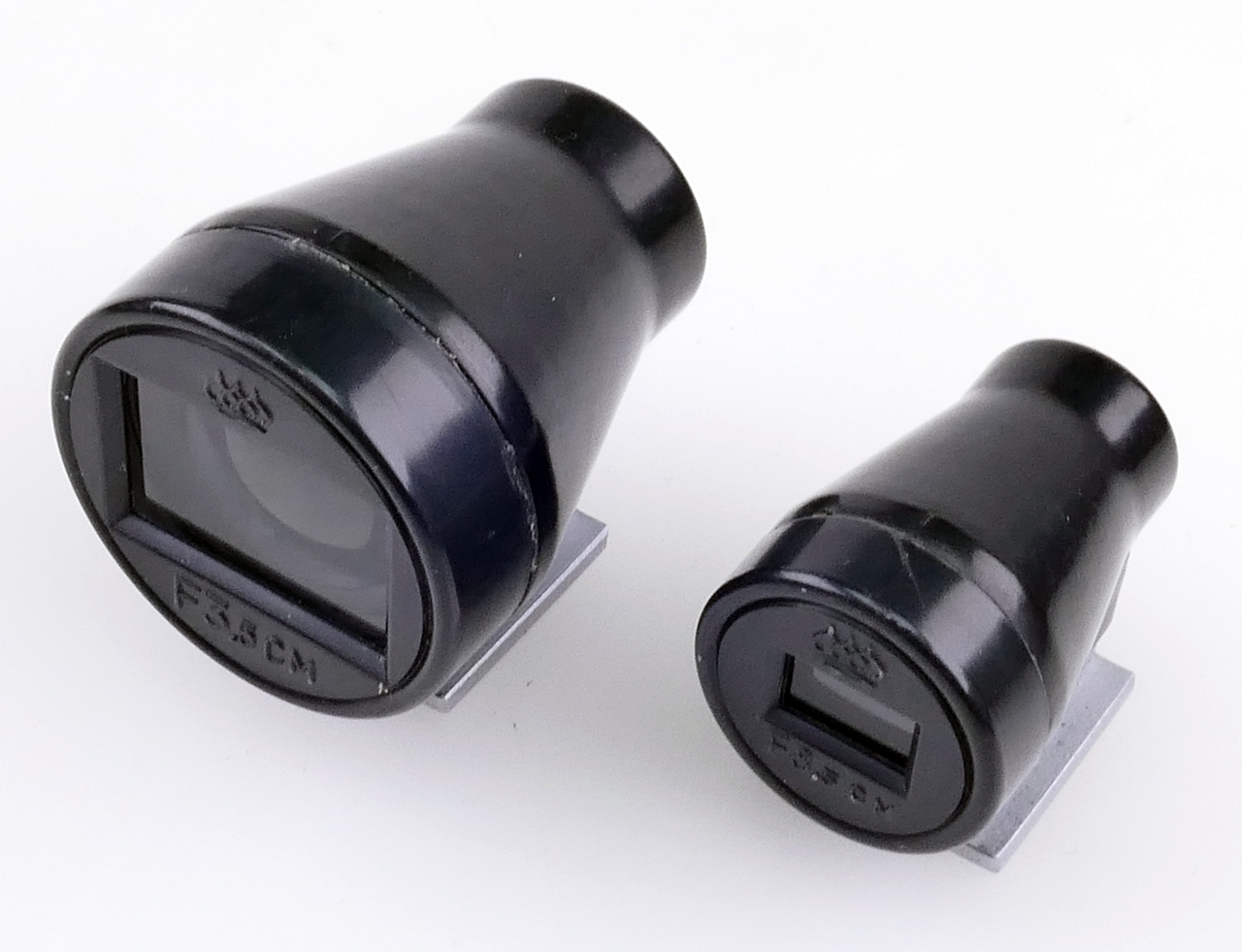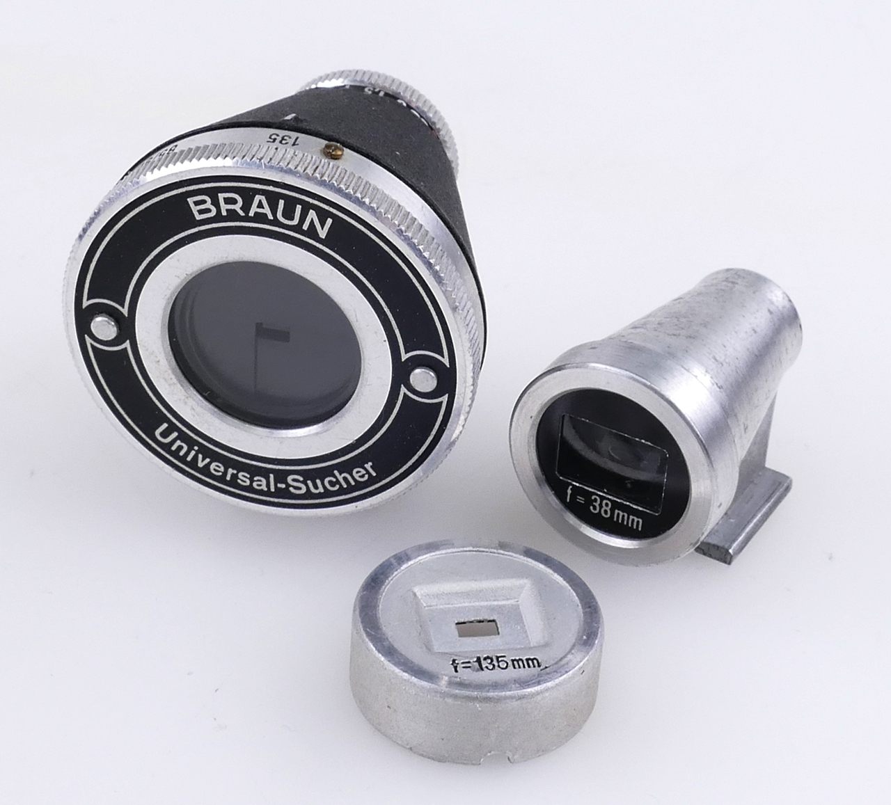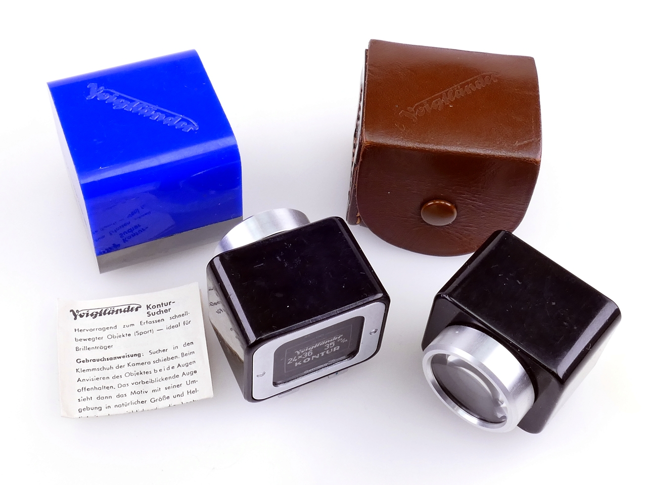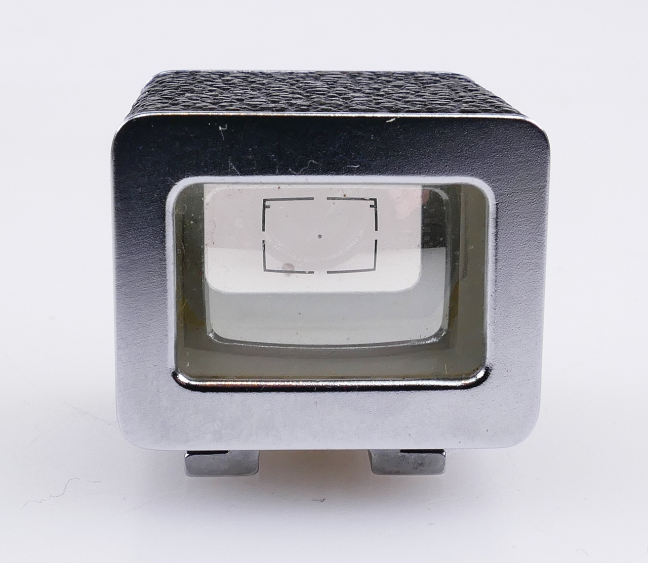 Optische Sucher, fast immer zum Aufstecken auf den Zubehörschuh der Sucherkamera wurden benötigt, wenn eine andere Brennweite verwendet wurde, bei Parallaxenausgleich im Nahbereich, für bessere Sicht z.B. für Brillenträger, oder die Kameras keinen eingebauten Sucher hatten. Hergestellt wurden die Sucher von Kamera - Firmen, es gab aber auch fremde Anbieter, die universelle Geräte bauten. |