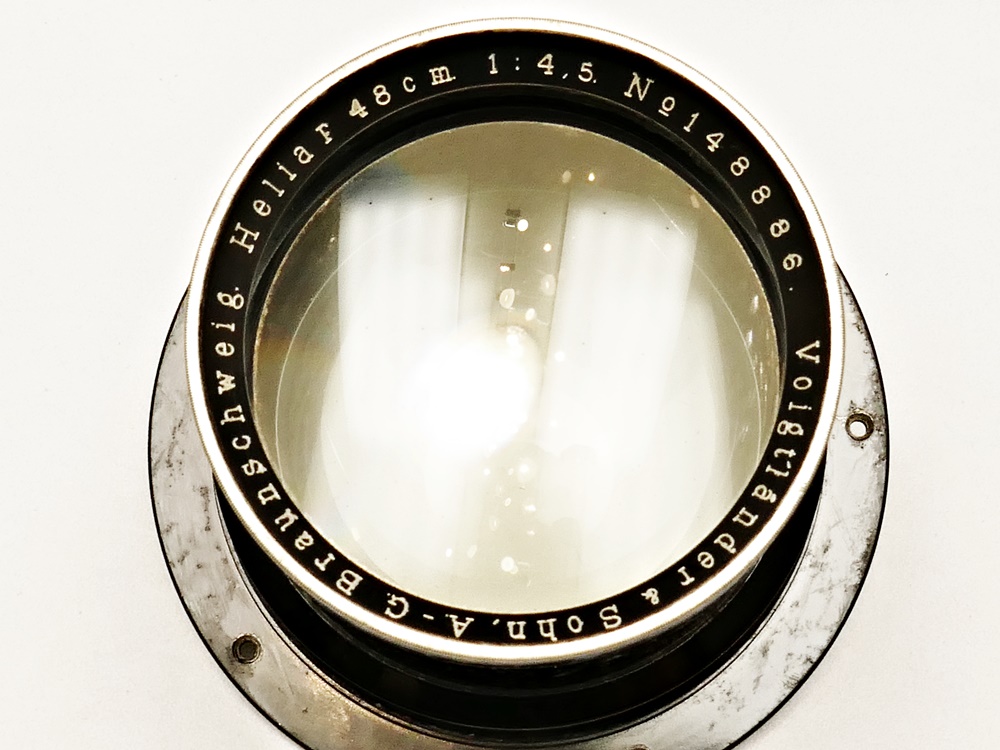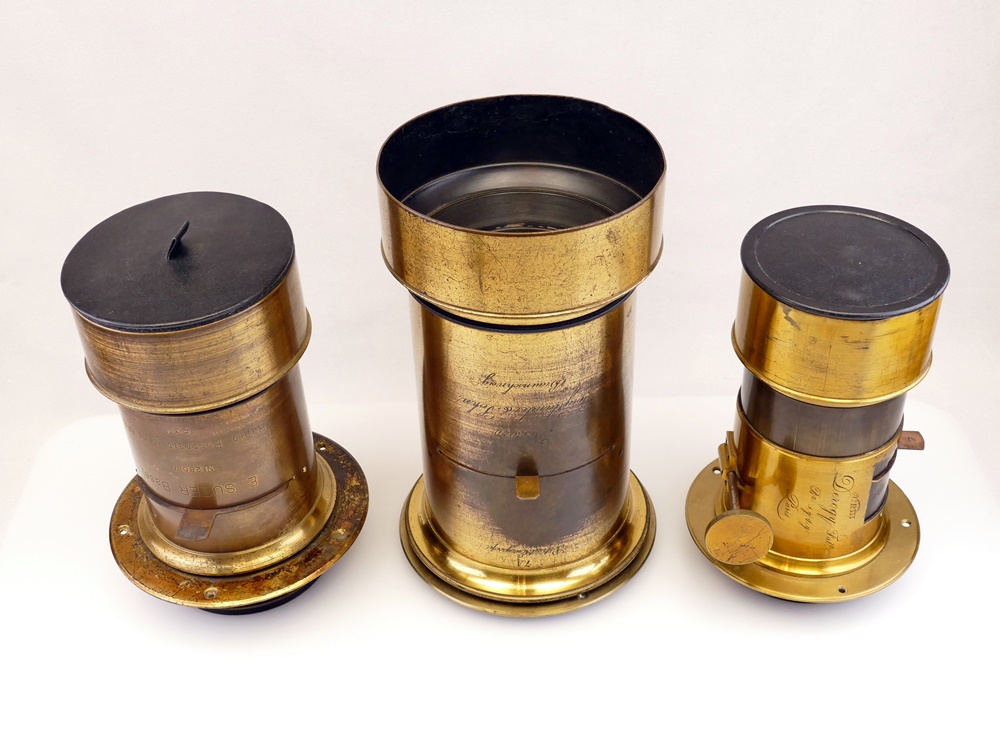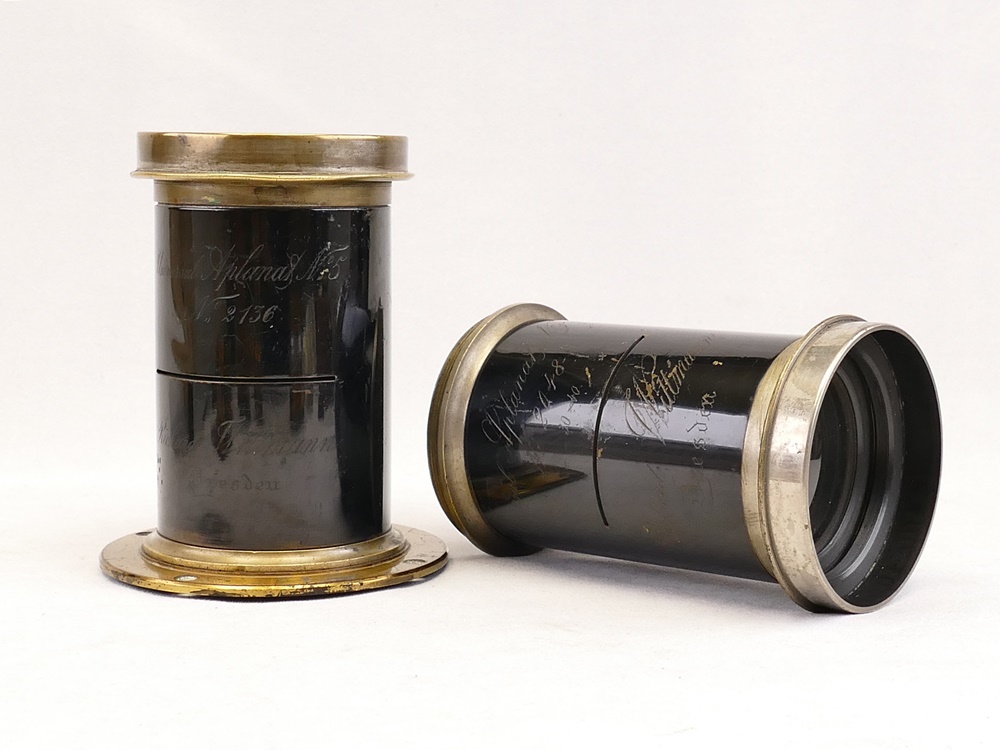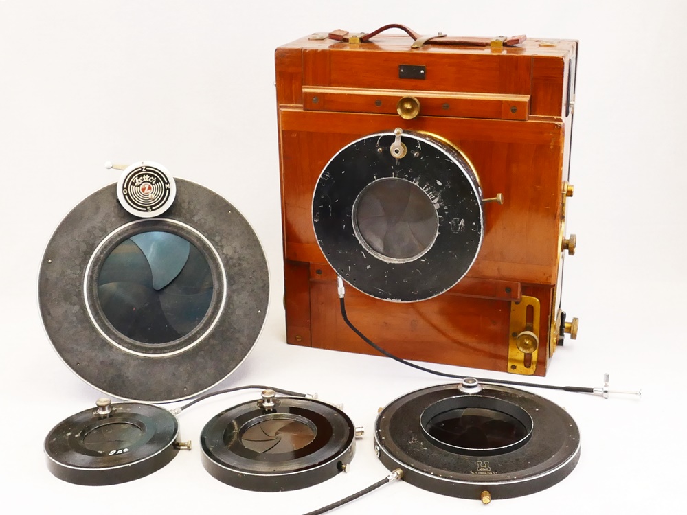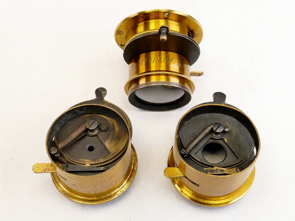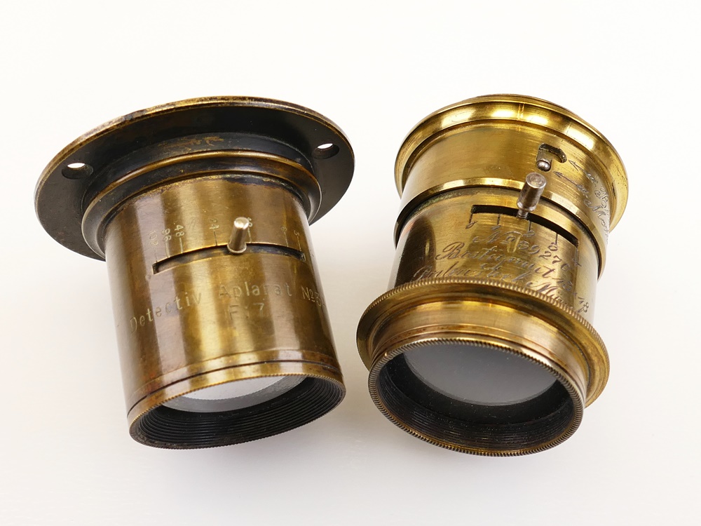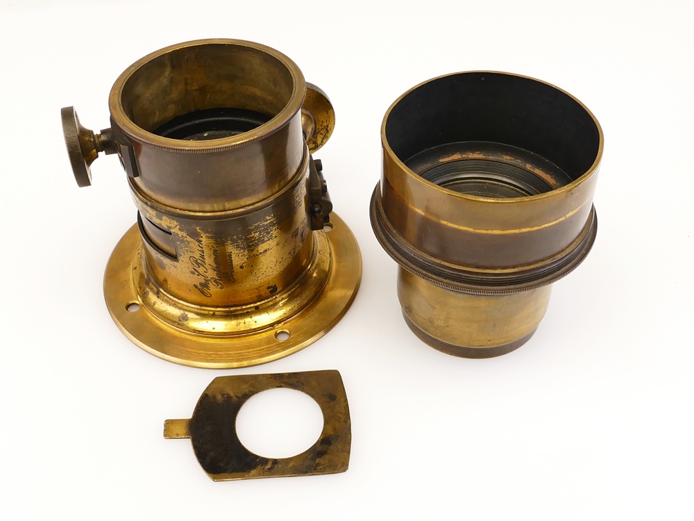 Während frühzeitlich oft lichtschwache Aplanat-Konstruktionen Verwendung fanden, kam mit Einführung der Tessare (4-Linser) von Carl Zeiss und der Heliare (5-Linser) von Voigtländer mit einer Lichtstärke von 1:4,5 eine neue Objektivgeneration zur Anwendung. Die Bauart der "Neuen" war kürzer, aber nicht leichter, weil große Glaslinsen verbaut wurden. G. Rodenstock München Eurynar - Anastigmat No. 113042 1:4,5 f = 36 cm Gewicht: 1,8 kg E. Krauss Paris Tessar No. 111269 1:6,3 f = 50 cm Gewicht: 2,7 kg