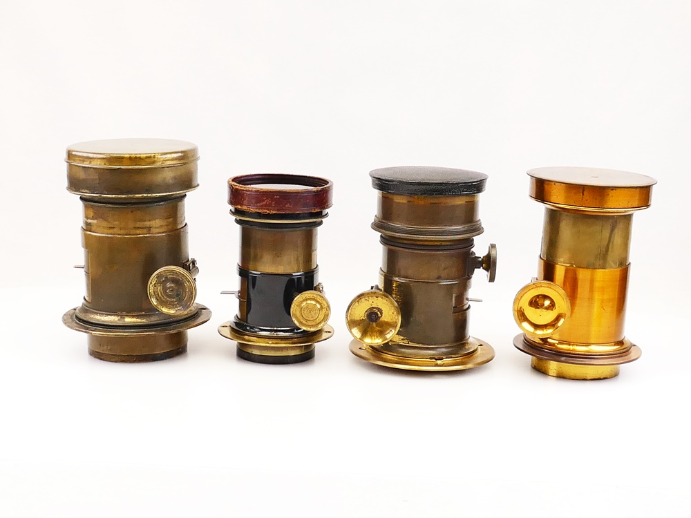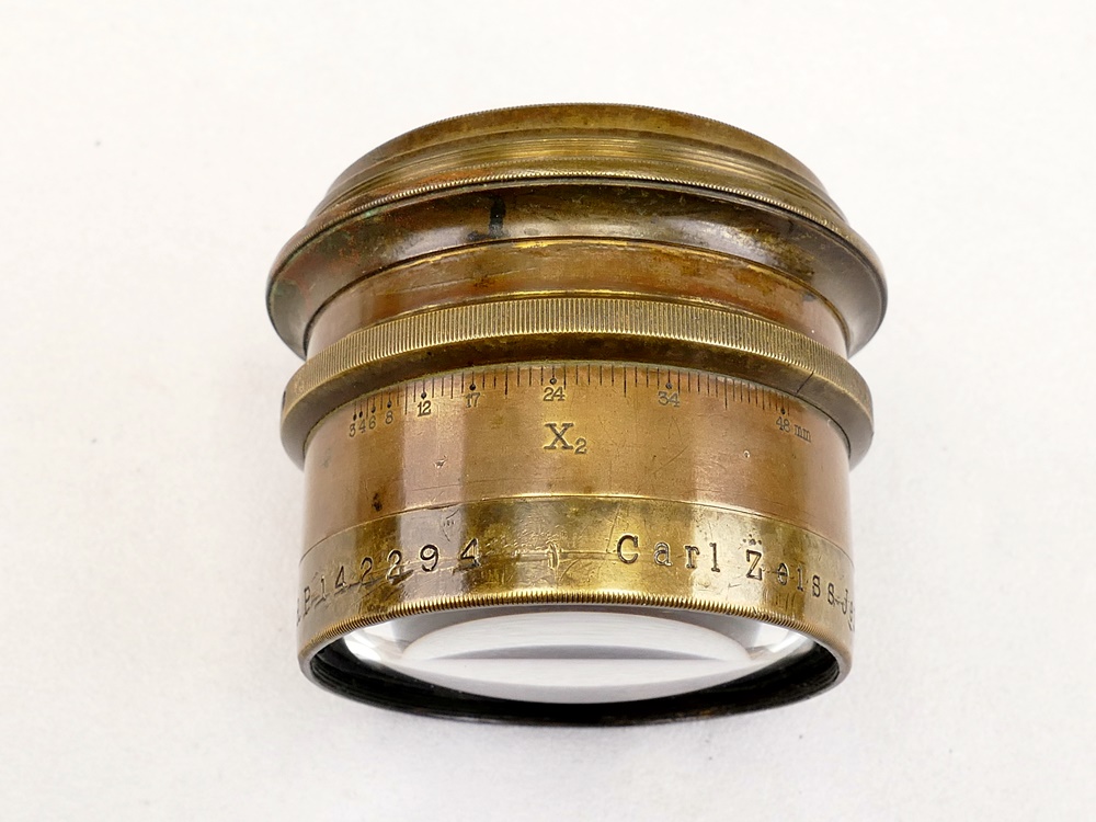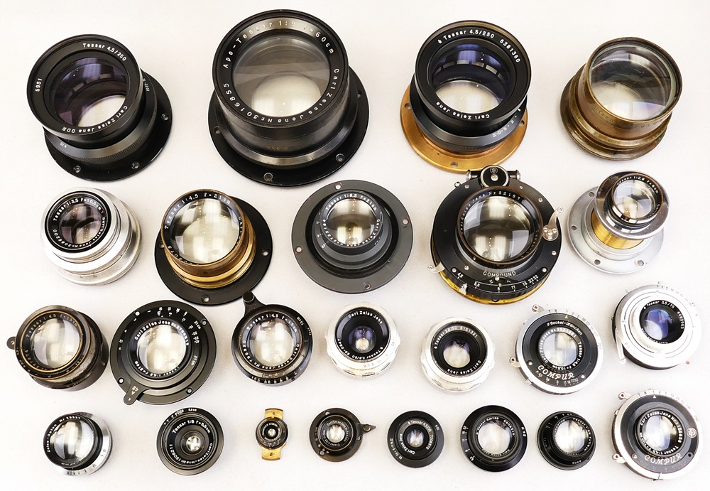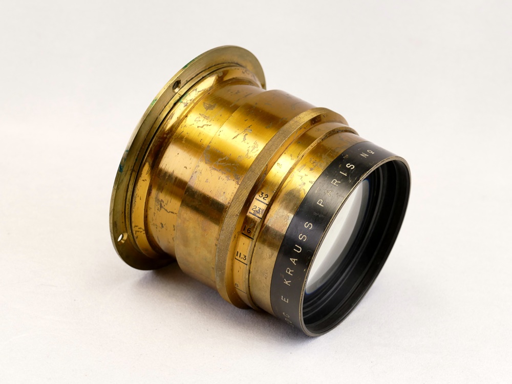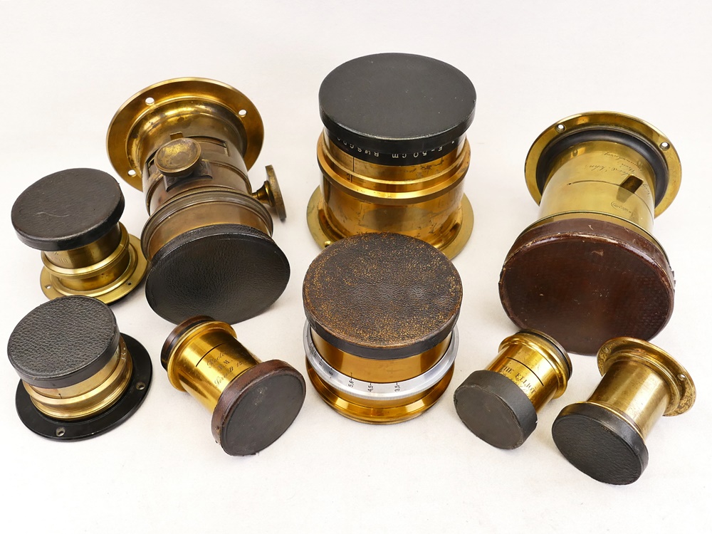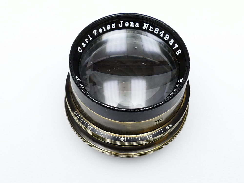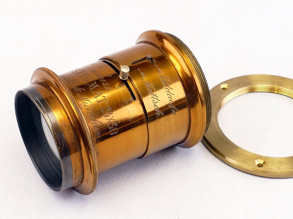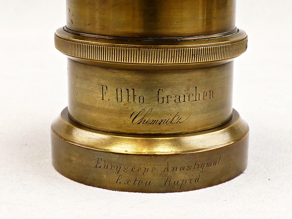 Während frühzeitlich oft lichtschwache Aplanat-Konstruktionen Verwendung fanden, kam mit Einführung der Tessare (4-Linser) von Carl Zeiss und der Heliare (5-Linser) von Voigtländer mit einer Lichtstärke von 1:4,5 eine neue Objektivgeneration zur Anwendung. Die Bauart der "Neuen" war kürzer, aber nicht leichter, weil große Glaslinsen verbaut wurden. G. Rodenstock München Eurynar - Anastigmat No. 113042 1:4,5 f = 36 cm Gewicht: 1,8 kg E. Krauss Paris Tessar No. 111269 1:6,3 f = 50 cm Gewicht: 2,7 kg