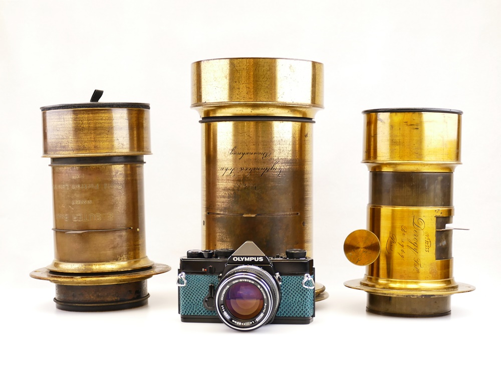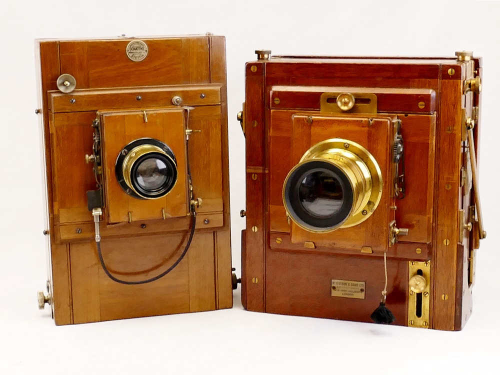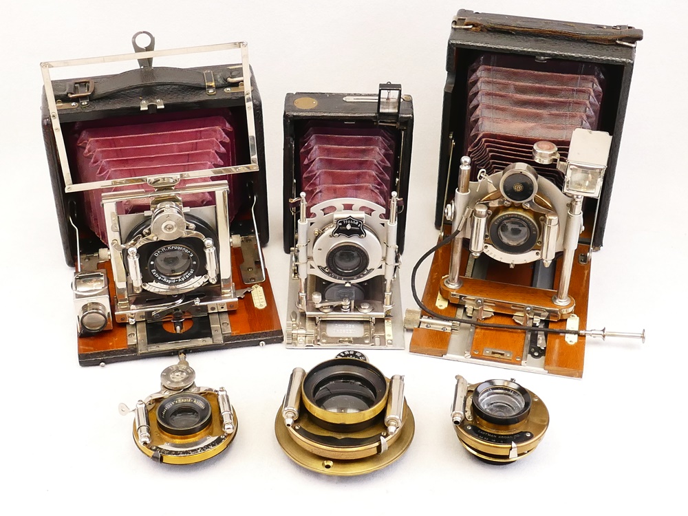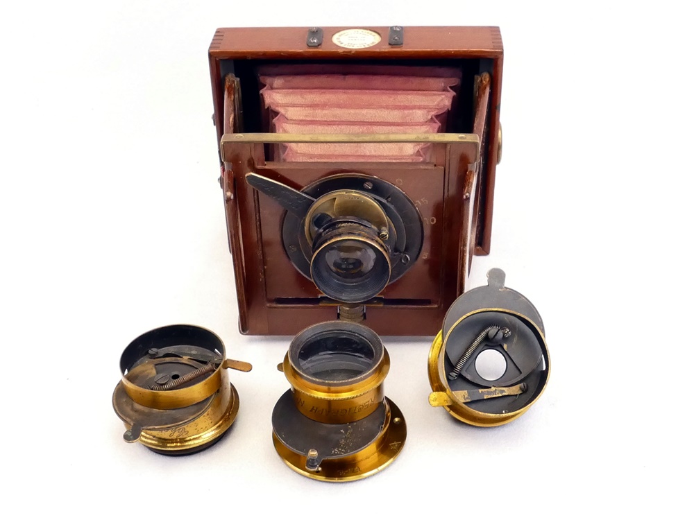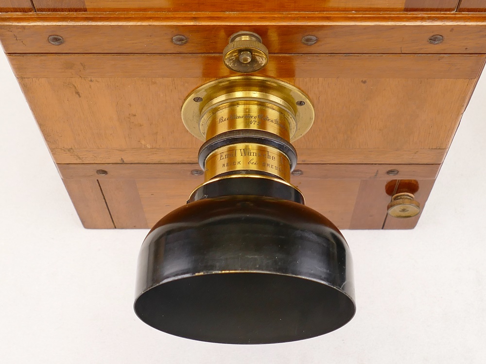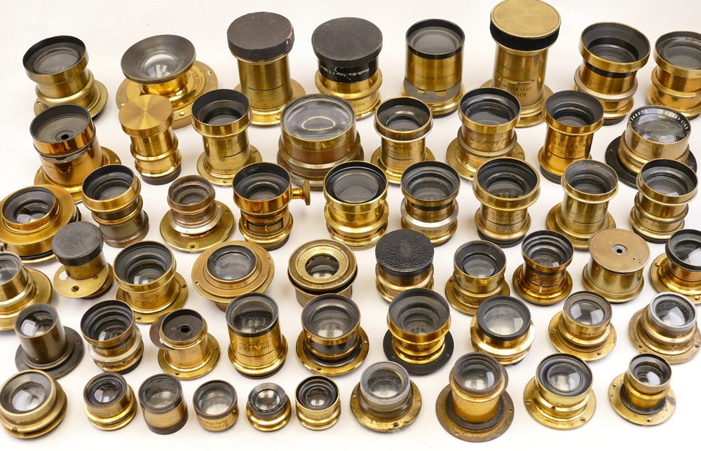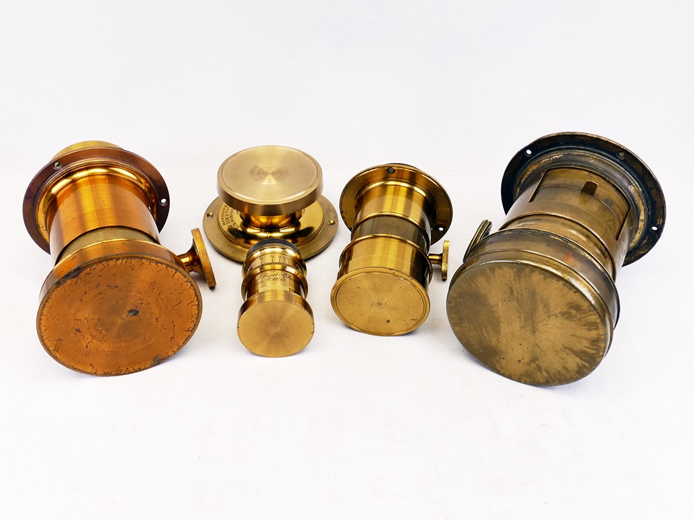 Während frühzeitlich oft lichtschwache Aplanat-Konstruktionen Verwendung fanden, kam mit Einführung der Tessare (4-Linser) von Carl Zeiss und der Heliare (5-Linser) von Voigtländer mit einer Lichtstärke von 1:4,5 eine neue Objektivgeneration zur Anwendung. Die Bauart der "Neuen" war kürzer, aber nicht leichter, weil große Glaslinsen verbaut wurden. G. Rodenstock München Eurynar - Anastigmat No. 113042 1:4,5 f = 36 cm Gewicht: 1,8 kg E. Krauss Paris Tessar No. 111269 1:6,3 f = 50 cm Gewicht: 2,7 kg