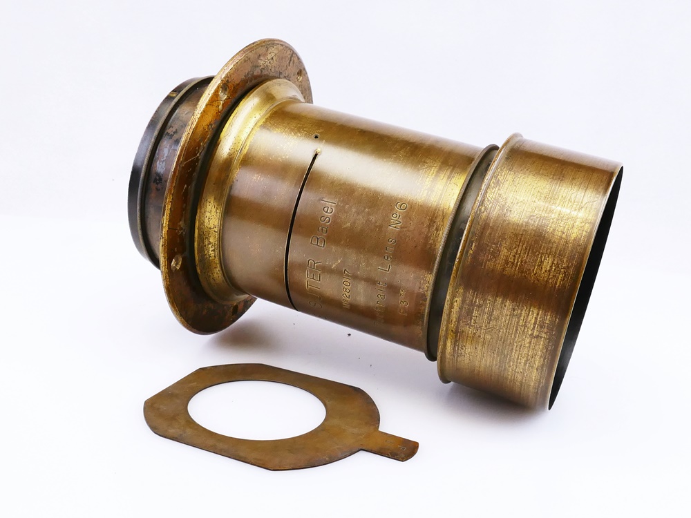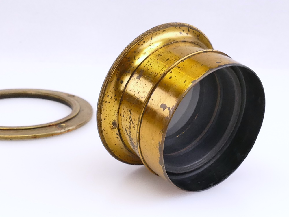 Frühe Objektive für Studio- und Plattenkameras Die großen Alten um und vor 1900 Riesengroß und schwer waren diese frühen Objektive. Da Vergrößerungstechniken nicht üblich, oder bei manchen Verfahren auch nicht möglich waren, entsprach das fertige Bild dem Aufnahmeformat. Entsprechend groß fielen daher die Kameras und Objektive aus. Voigtländer Portrait - Euryskop Nr. 7 4 Zoll 395 mm No. 33027 hergestellt am 13.09. 1887 Länge: 270 mm Durchmesser: 150 mm Gewicht: 4,26 kg E. SUTER Basel No. 28017 Rapid Portrait Lens No. 6 F. 3.75 Länge: 225 mm Durchmesser: 120 mm Gewicht: 2,47 kg Derogy Fabt. Bte s.g.d.g. Paris No. 12333 Länge: 220 mm Durchmesser: 105 mm Gewicht: 2,03 kg