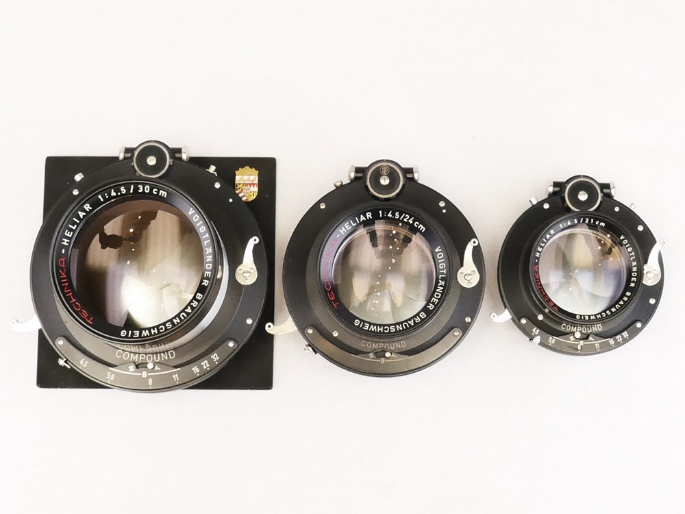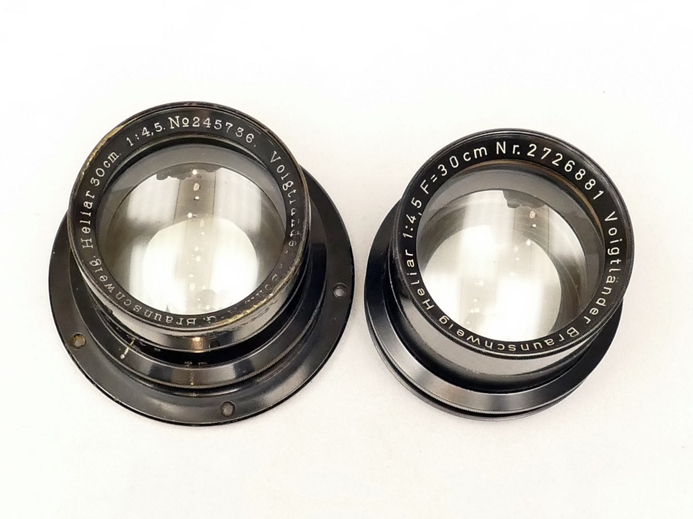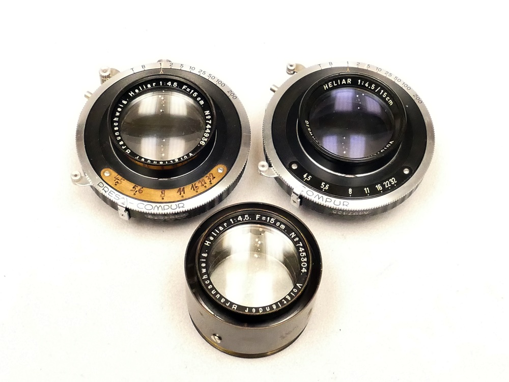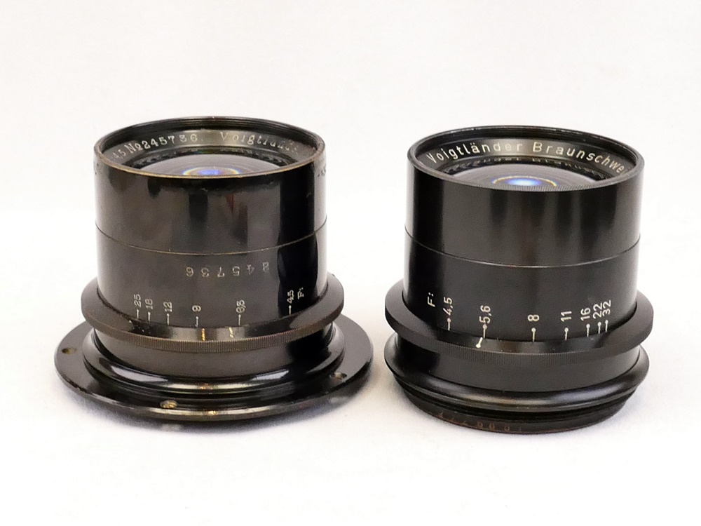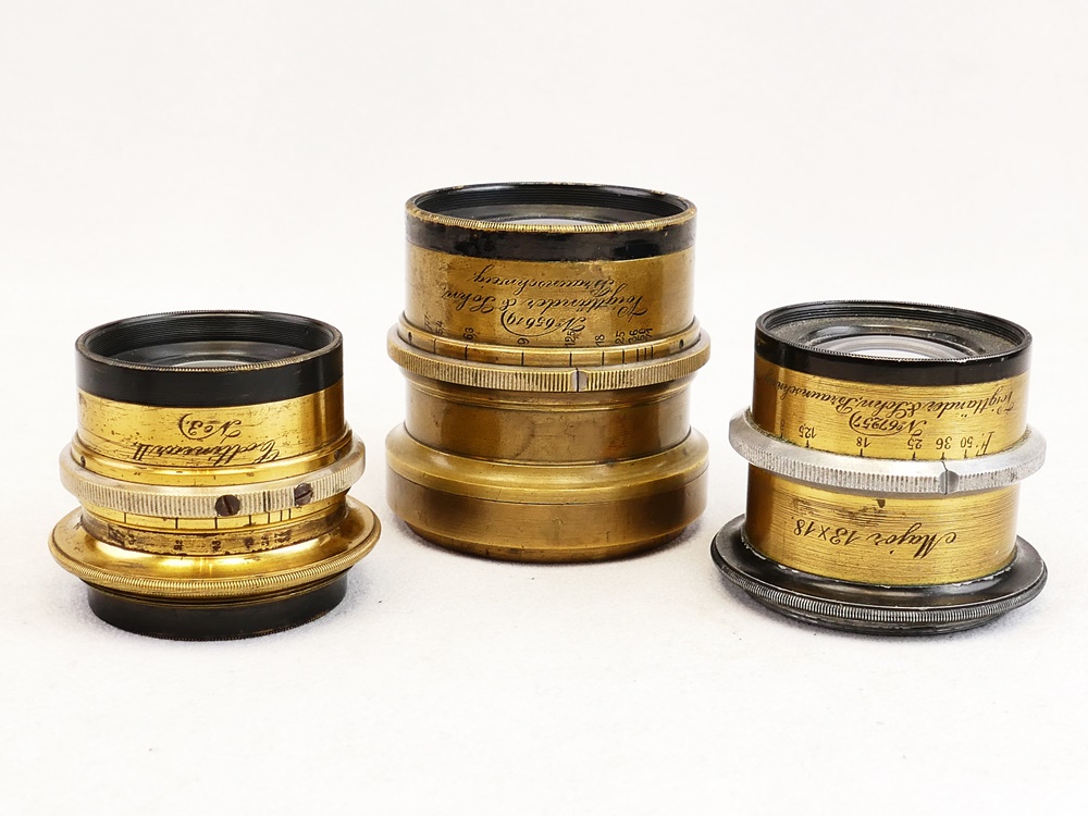 Voigtländer & Sohn Braunschweig Collinear II Nr.4 204mm No.65619 Fertigungsdatum 28.12. 1899 Voigtländer & Sohn Braunschweig Collinear II Nr.3 155mm No.45969 Fertigungsdatum 17.08.1894 Voigtländer & Sohn Braunschweig Major 24 für 13 x 18cm Fertigungsdatum 07.09.1900