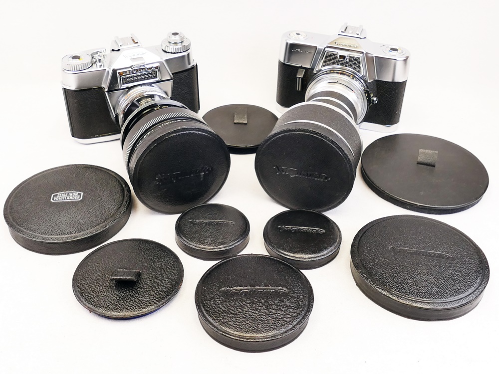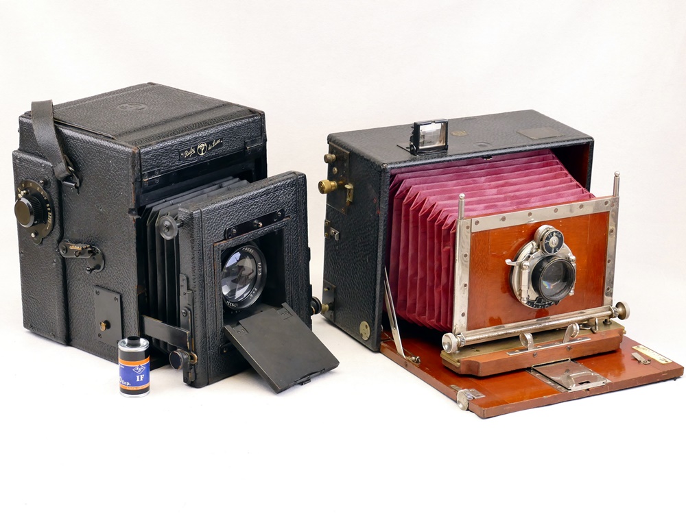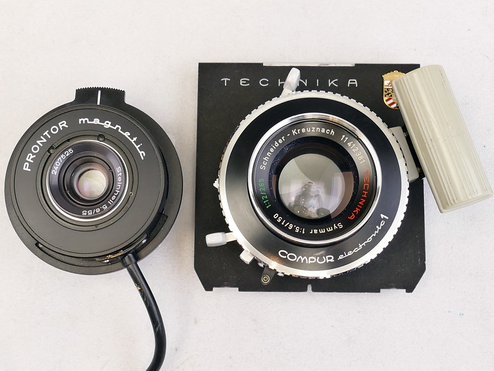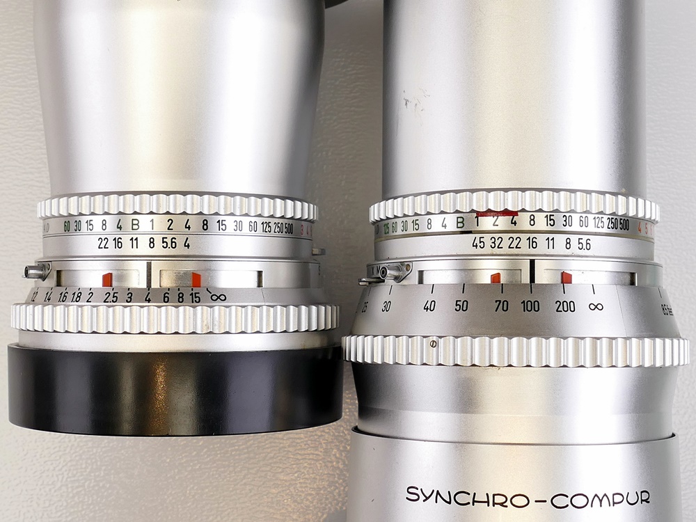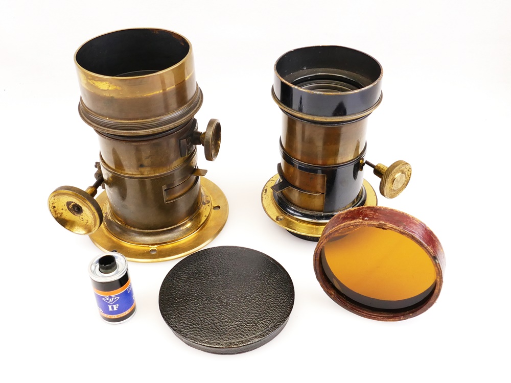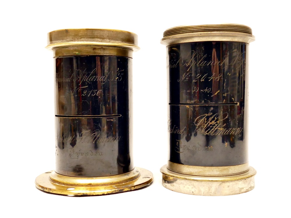 Rodenstock Bistigmate und Wittmanns "Ofenrohre" Besonderheit der Rodenstock Bistigmate ist die umstellbare Fokussierung von Mattscheiben- und Filmebene. Das linke Objektiv ist für das 13 x 18cm Format. Das Rechte für 18 x 24 cm. Schwarz lackiert sind diese Universal Aplanate "Ofenrohre" von Richard Wittmann Dresden. No. 2048 und 2136. Für Format 30 x 40 cm. Länge 130mm Durchmesser 80mm Gewicht 710g