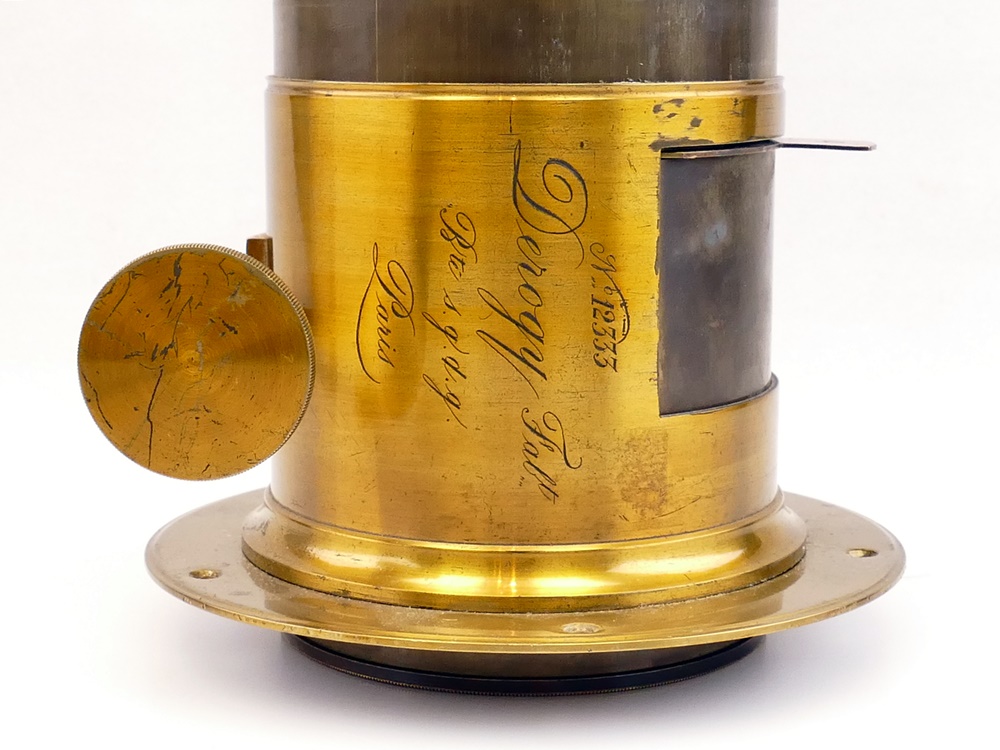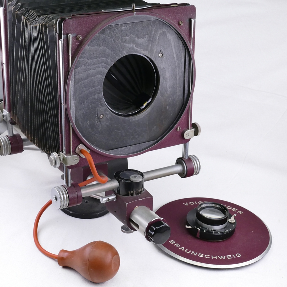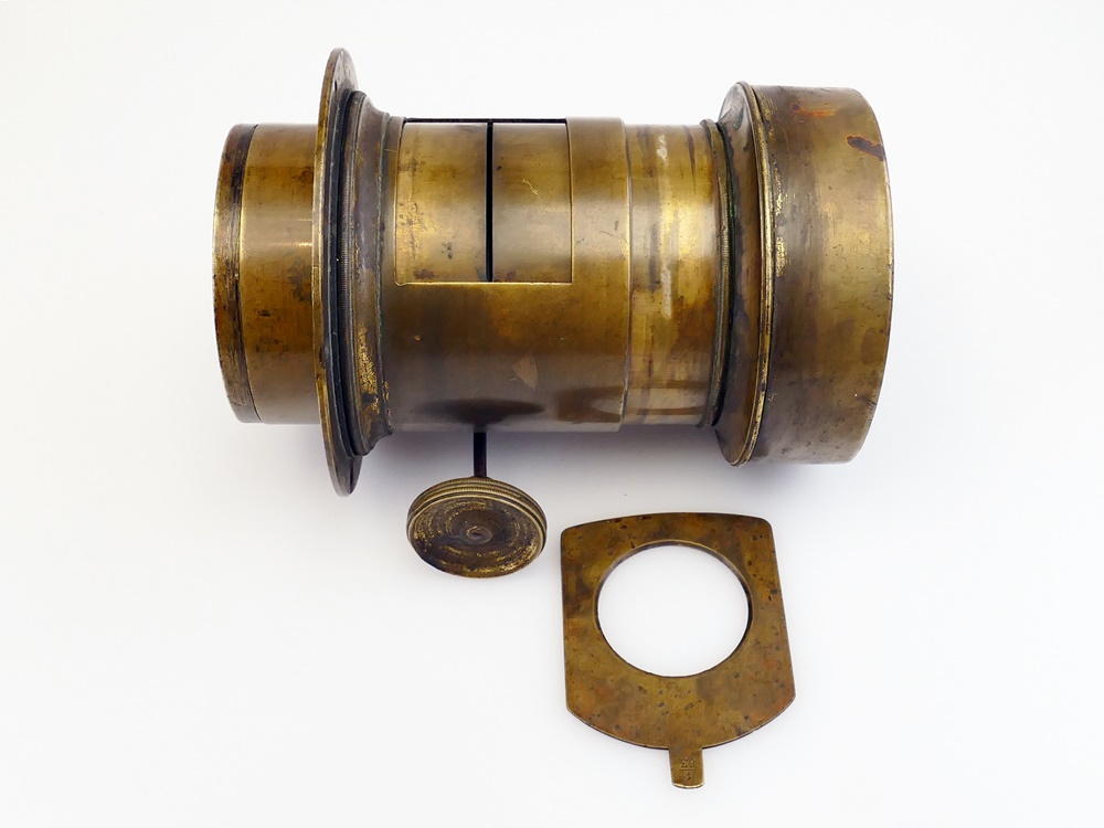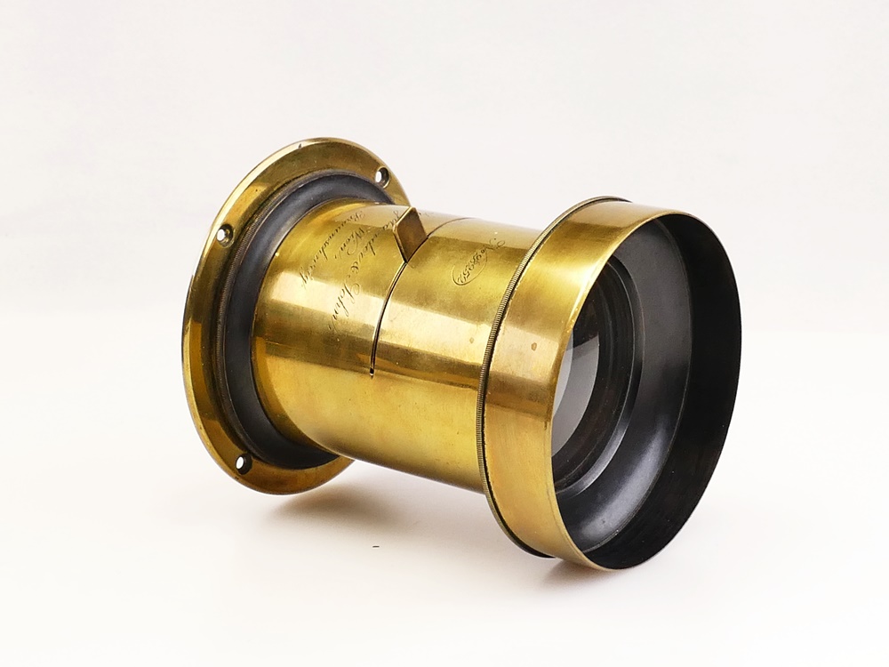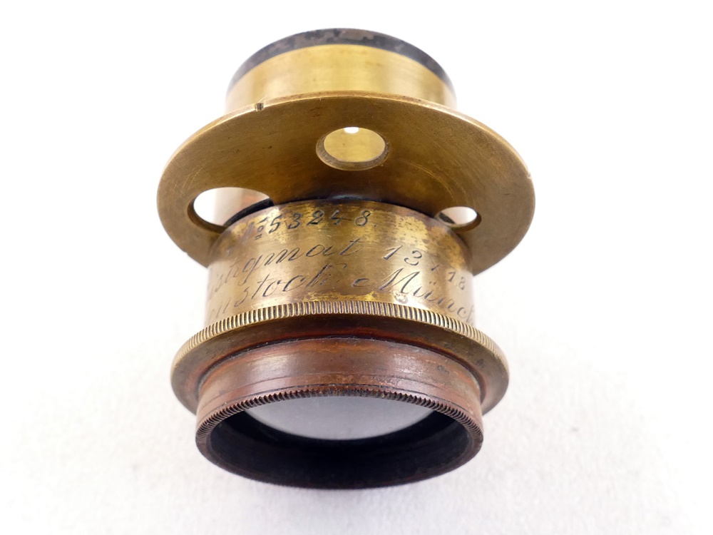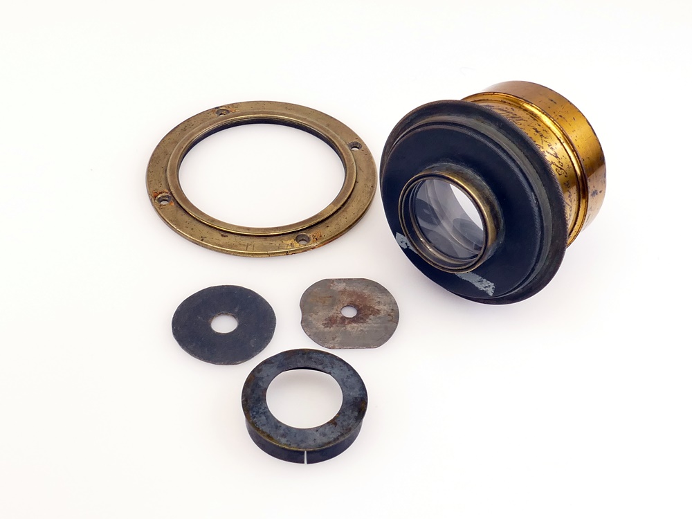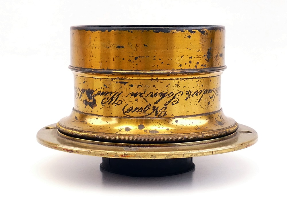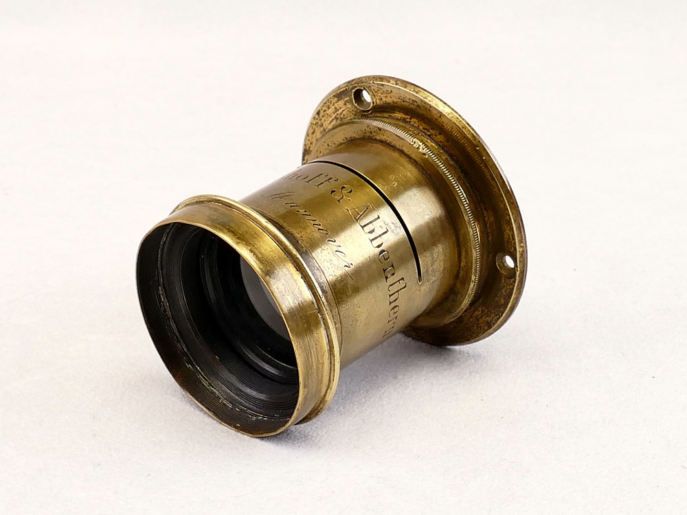 Voigtländer Petzval - Objektiv No. 9761 Länge: 68 mm, Durchmesser 70 mm Belegt ist die Objektiv - Herstellung ab der Fertigungsnummer 27.449 am 12.02.1884. Ab 1849 wurden die Objektive mit "Voigtländer & Sohn in Wien und Braunschweig beschriftet. Anhand der kleinen Seriennummer wurde das Objektiv evtl. schon um 1850 gebaut.