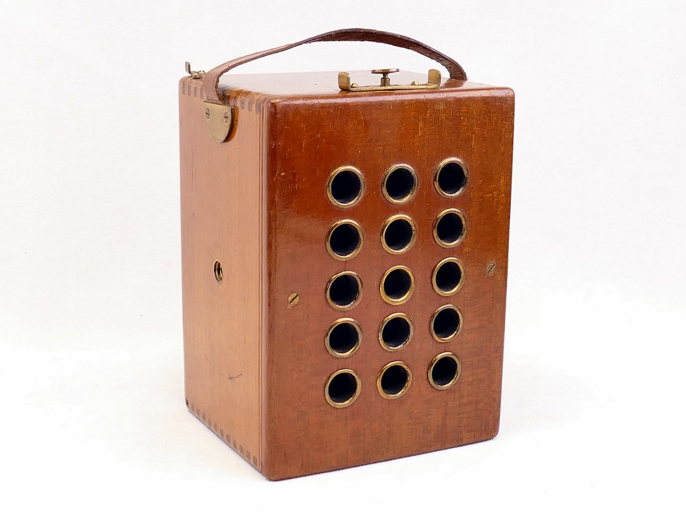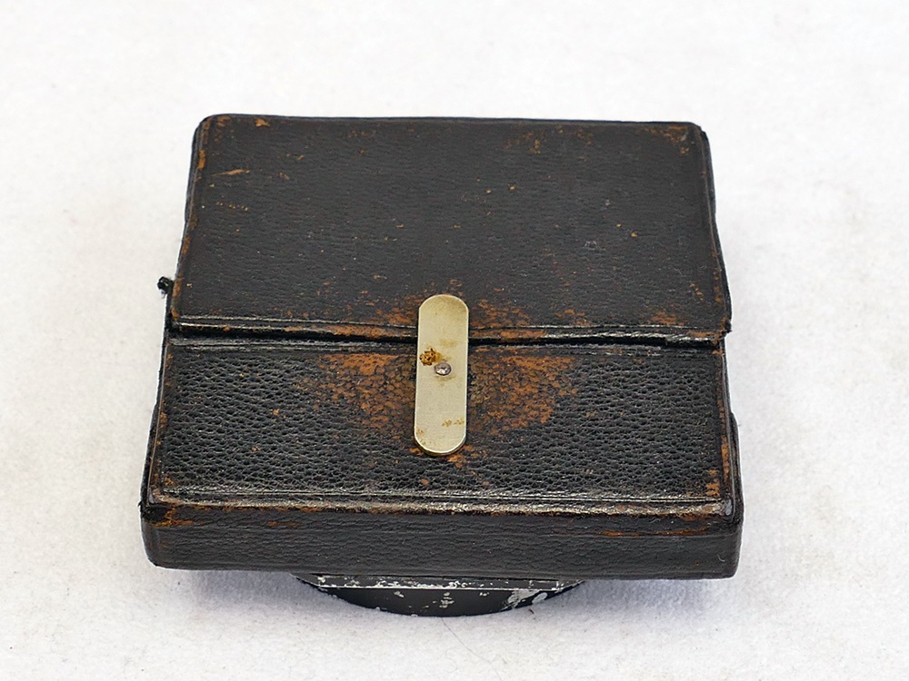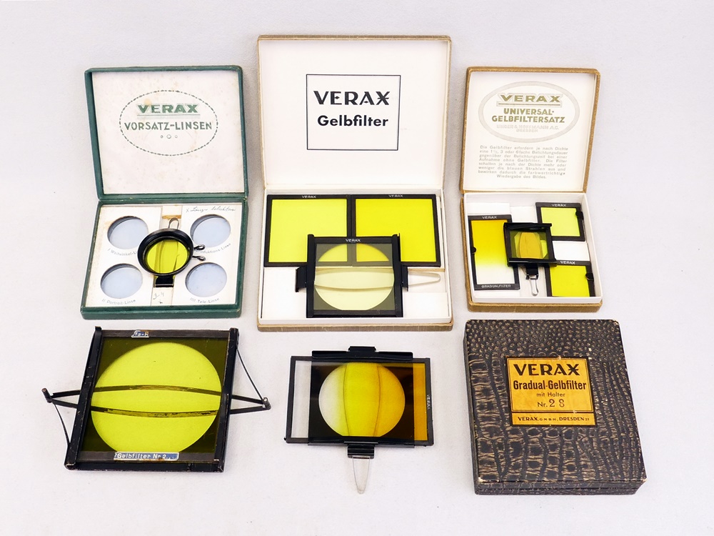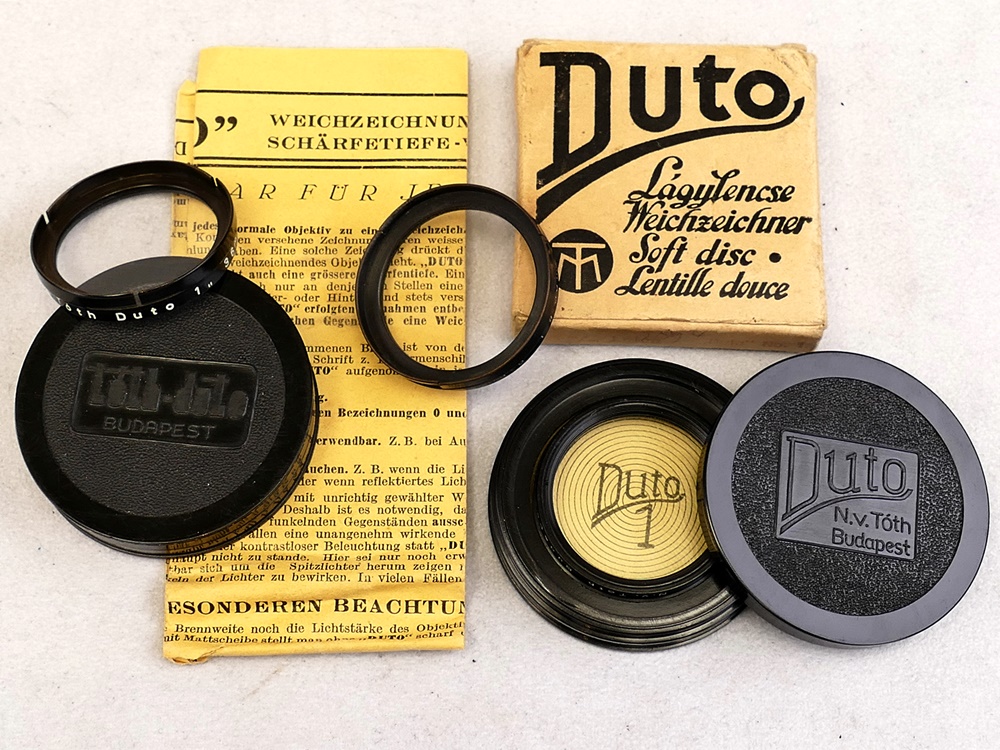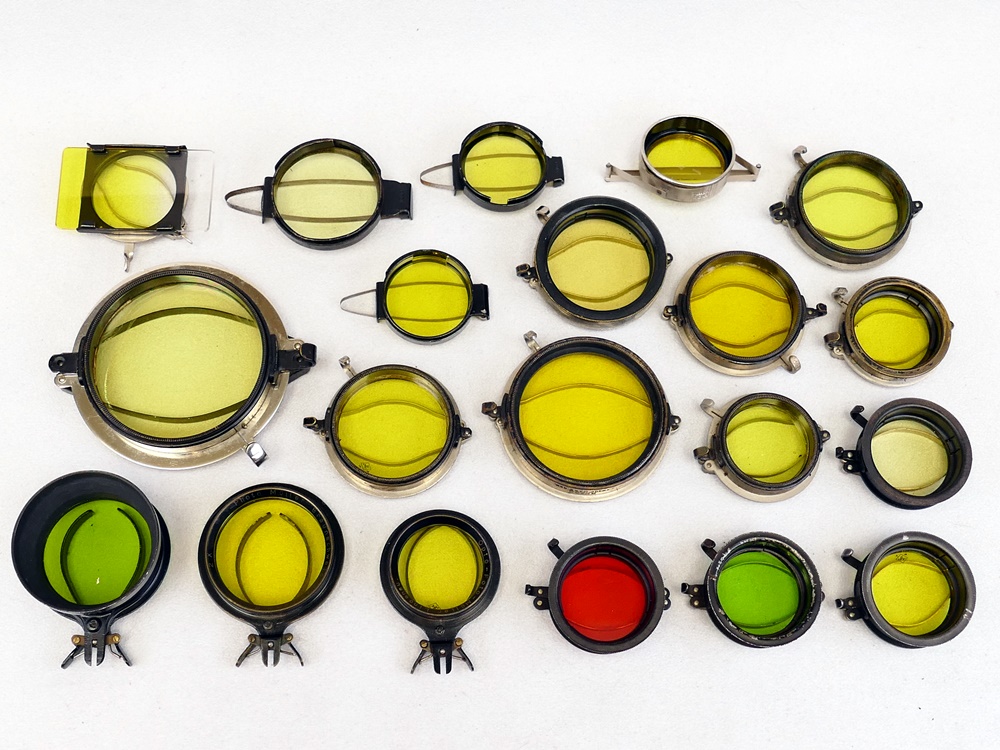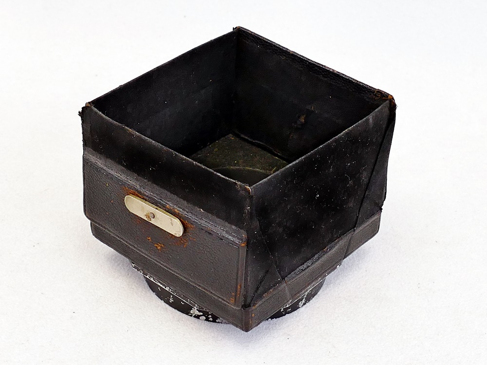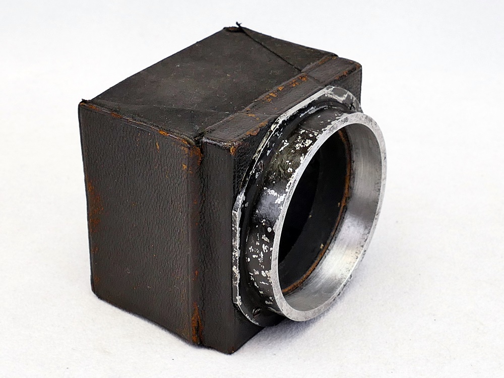Filter Diverse Filter. Gelbfilter wurden besonders bei Landschaftsaufnahmen verwendet. Auch komplette Sätze waren erhältlich. Eckige Verlaufsfilter, um z.B. nur den Himmel abzudunkeln. Spezielle Weichzeichner - Filter mit konzentrisch eingeprägten Ringen. Sehr schön auch die Bakelit - Dosen der Filter. Nahlinsen und Polfilter Links: Nahlinsen - Sätze für die Verwendung bei veschiedenen Entfernungen im Nahbereich. Rechts: Geniale Konstruktion der Polfilter von Steinheil München. Man schaut von hinten durch das Filter und dreht es, um den besten Effekt festzustellen. Dann drückt man die beiden Hebel zusammen. Die Kleine Kugel (Kreis) rollt nach unten und wird in dieser Position gehalten wenn die Hebel losgelassen werden. Jetzt kann das Filter vor das Objektiv gesetzt werden, ohne den Effekt zu verlieren. Gegenlichtblenden Letztendlich soll noch ein Zubehör - Teil erwähnt werden, dass recht selten für sehr alte Objektive anzutreffen ist. Vielleicht legte man keinen großen Wert auf Gegenlichtblenden oder sie waren bereits Bestandteil des Objektives. Hier sind zwei interessante Objekte. Sehr schöne und wirksame Gegenlichtblende mit Klappe und Formatmasken im Originalkarton. Klappbare Lederblende, die auch als Schutz auf dem Objektiv verbleiben kann. Machen wir einen Deckel drauf Ein leider vernachlässigtes Zubehörteil ist der Objektivdeckel. Viele Objektive wären in einem besseren Zustand, wenn sie öfter einen Schutz getragen hätten. Dabei sind die Deckel der frühen Objektive durchaus sammlungswürdig. Frühe Deckel, oft Pappe beledert oder geprägt. Einige Objektive hatten auch massive Messingdeckel. Besonders hochwertig und aus massivem Leder sind die Voigtländer - Objektivdeckel. Innen mit wunderschönem Samt gefüttert.