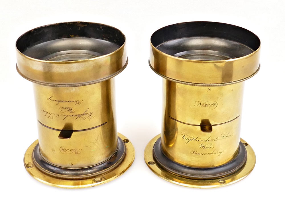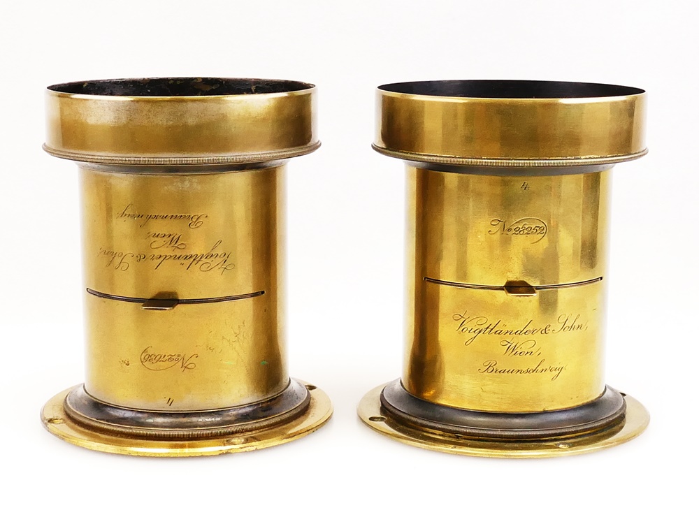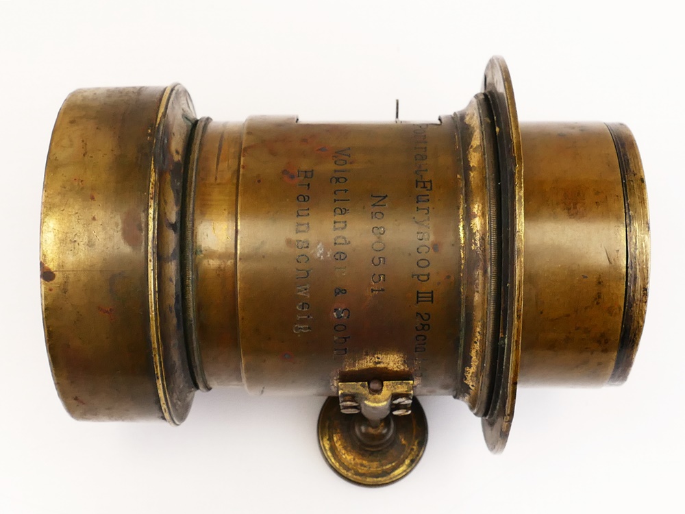 Voigtländer & Sohn Wien Braunschweig Euryscop No. 4 Länge: 120 mm Durchmesser: 95 mm Gewicht: 1000g Seriennummer: 27636 - Fertigungsdatum 25.03.1884 Seriennummer: 28252 - Fertigungsdatum 07.08.1884