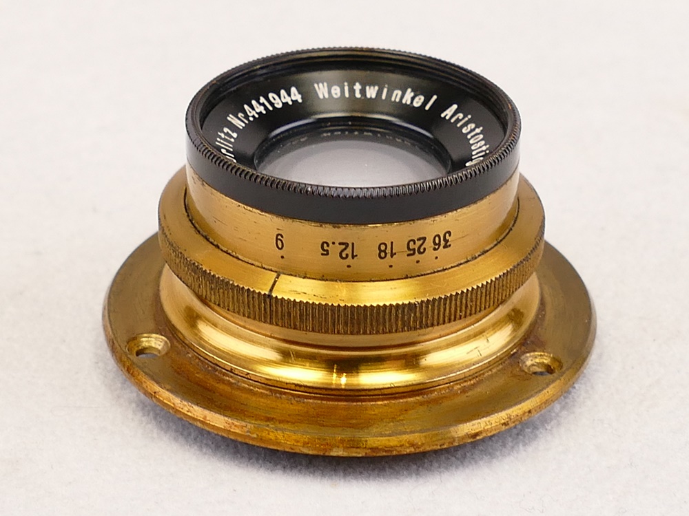 Eine besondere Herausforderung für Konstrukteure waren früher Weitwinkel-Objektive. Um die Bildfehler zu minimieren musste bei diesen Objektiven stark abgeblendet werden Pantoskop No.5 - R.O.J.A. vorm. Emil Busch Rathenow Weitwinkel Lynkeiskop Serie F No.3 C.P.Goertz Berlin Blende 24 bis 768! Weitwinkel Arististigmat 1:9 F = 12cm Meyer Görlitz Rapid Weitwinkel - Lynkeiskop Serie E No.0 No. 44720 C.P.Goertz Berlin Blene 9 bis 192