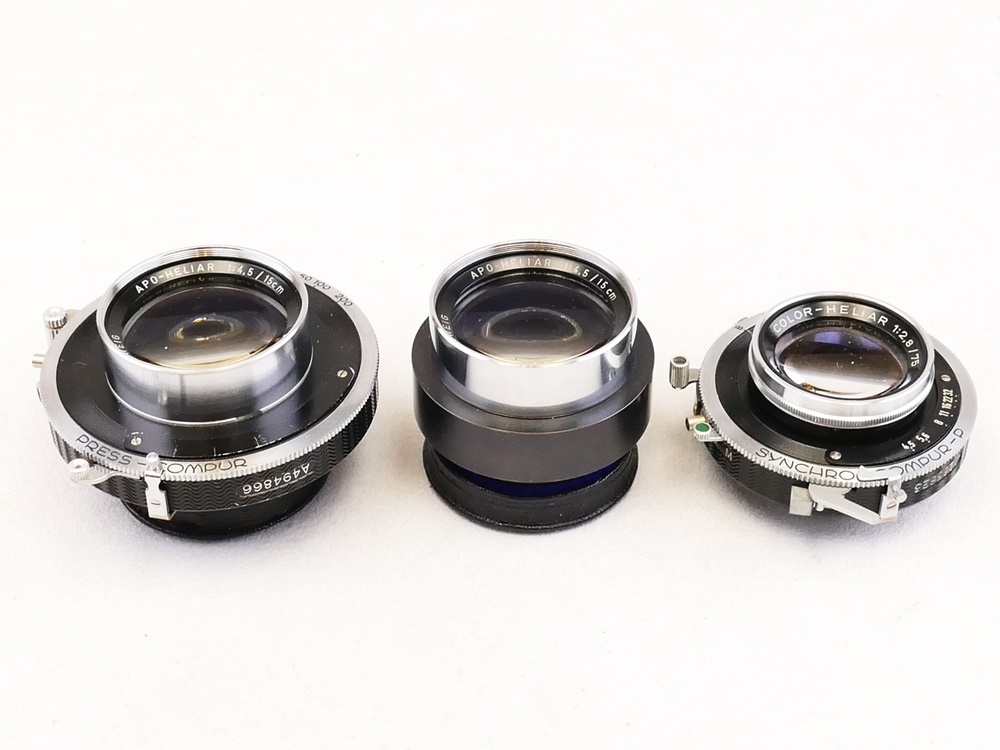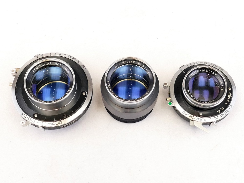Das fünflinsige Heliar war das bekannteste Objektiv von Voigländer und wurde über viele Jahre in diversen Größen gebaut. Geschätzt wurde das Objektiv besonders von Landschafts- und Portraitfotografen wegen der weichen Abbildung. Einige frühe Heliare für große Formate. Filmspule und Kamera dienen als Größenvergleich. Das Größte, mit 48 cm Brennweite. No. 148886 Fertigungsdatum 31.07.1919 Länge: 145mm Gewicht: 3,74 kg Zwei baugleiche 30 cm mit großem Herstellungszeitraum. No. 245736 v. 4.12.1925 + No. 2726881 v. 1945 Drei 15 cm - Heliare für das damals als "Kleinbild" belächelte Aufnahmeformat 9 x 12 cm Speziell für Linhof hergestellte Technika - Heliare mit 21, 24 und 30 cm im Compound - Verschluss Die APO-Heliare 15cm und das Color-Heliar 7,5cm sind Muster und kamen nie in den Handel. Ausgeliehen von meiner Voigtländer Prototypen - Seite. Für die besseren Platten- und Rollfilmkameras waren die Heliare stets die erste Wahl in der Preisliste. Auch in Stereokameras wurden Heliare verbaut. Hier drei Stück in der Stereflektoskop.
